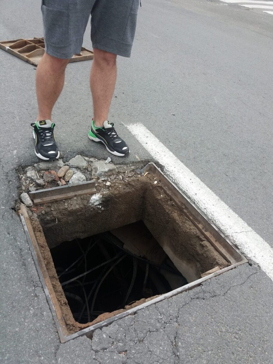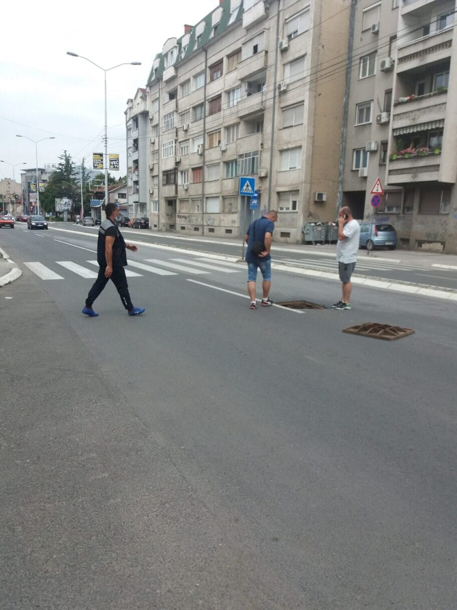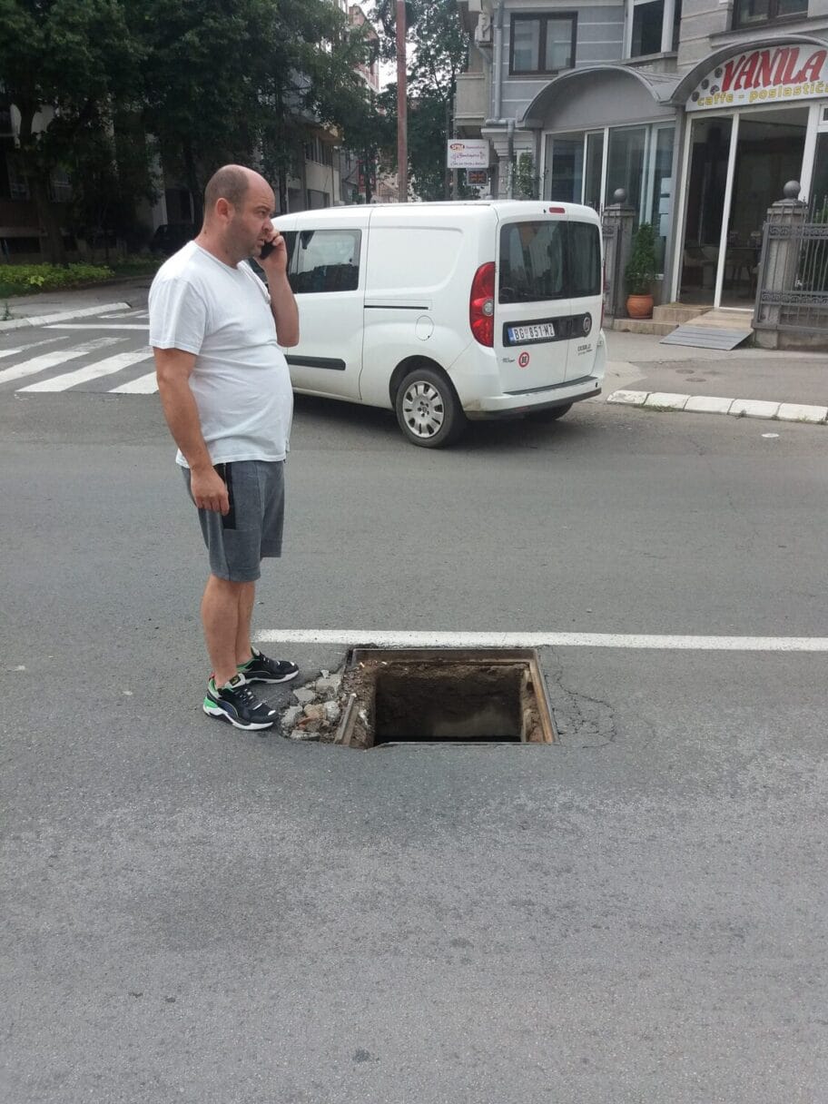 Vidno oštećenje obruba poklopca tako da ga je kamion u prolasku podigao i ostavio otvorenog.