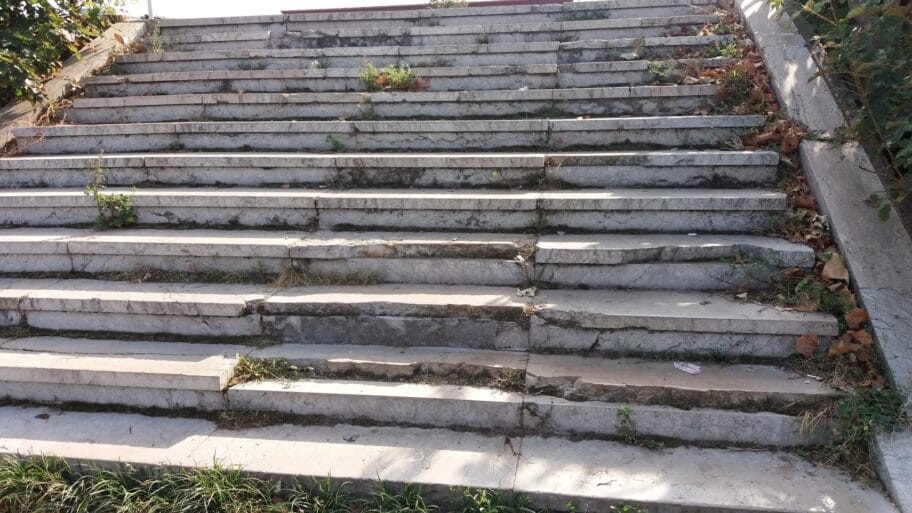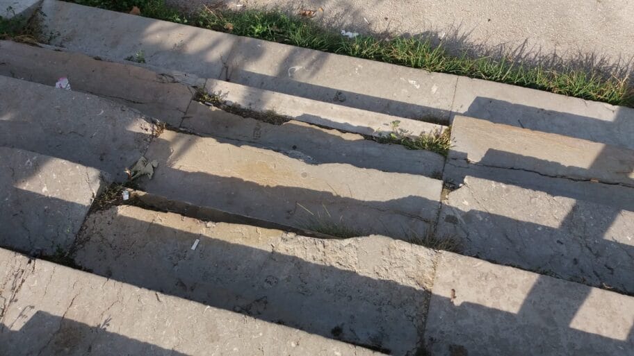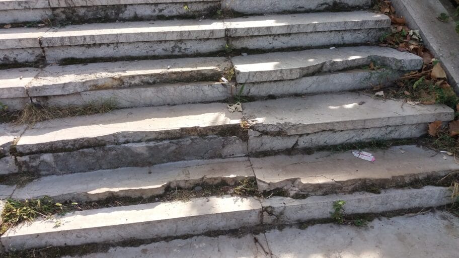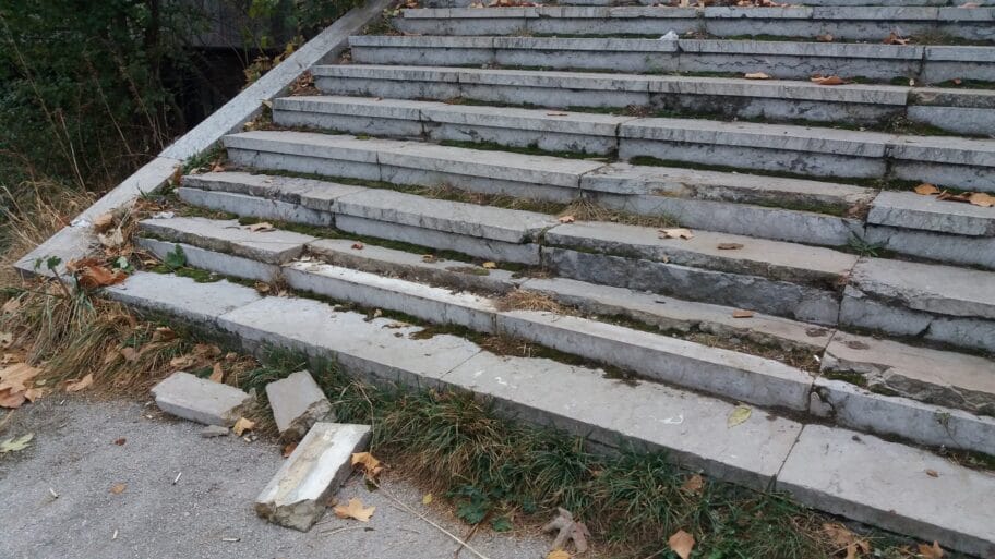 Stepenište koje vodi sa bedema Gabrovačke reke, prema bulevaru Nemanjića, sa strane Zone 2, je u lošem stanju, a situacija je sve gora.Sa velikog dela gazišta je otpao kamen, pa je širina gazišta, manja od polovine potrebne širine. Ukoliko se stane na neko od ovih oštećenih gazišta, postoji opasnost od uganuća noge ili pada sa stepenica.Na jednoj od fotografija se vidi gazište sa veoma velikim naprsnućem, koje se proteže celom dužinom. Postoji i fotografija, snimljena nekoliko dana kasnije, na kojoj se vidi da je i ovo gazište u međuvremenu otpalo i sada se ostaci nalaze u podnožju stepeništa.Lokacija: https://goo.gl/maps/Y3NcqGhsACH2