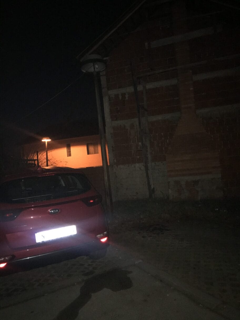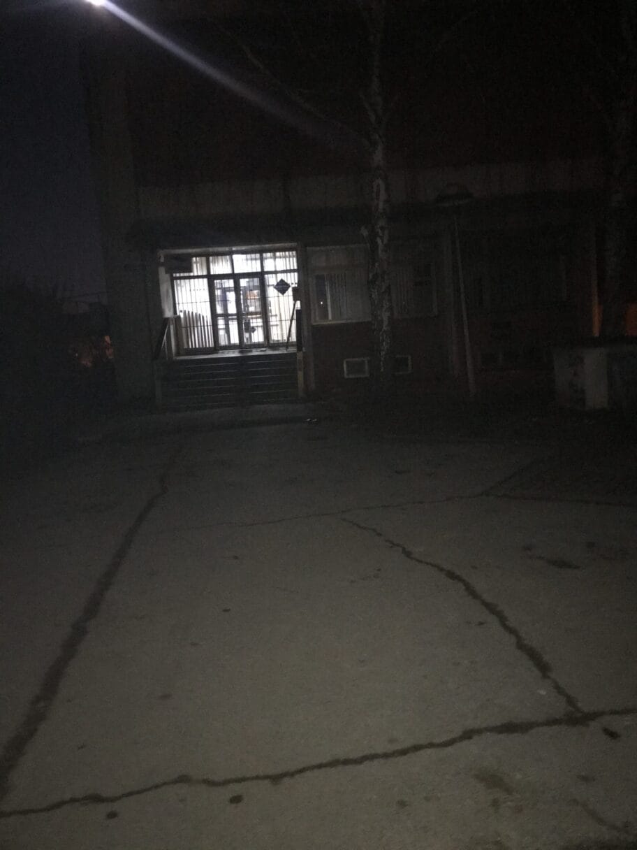 Svetla u dvorištu pošte u naselju broj 6. Tu je ulaz u poštu i prolaz do škole, neosvetljeno i mračno.