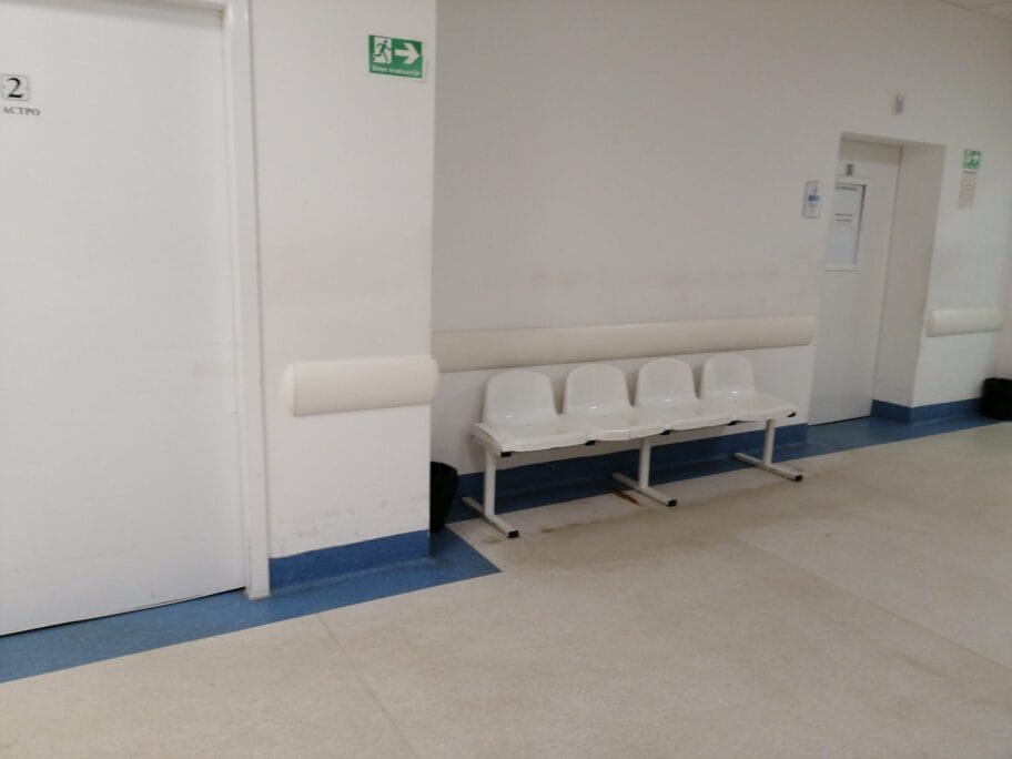 Skoro sve bele stolice za pacijente u Urgentnom centru u Nišu u hodniku ispred ambulanti gastro, neurologija i kardiologija su polomljene. Nemamo na čemu da sedimo dok čekamo pregled lekara.