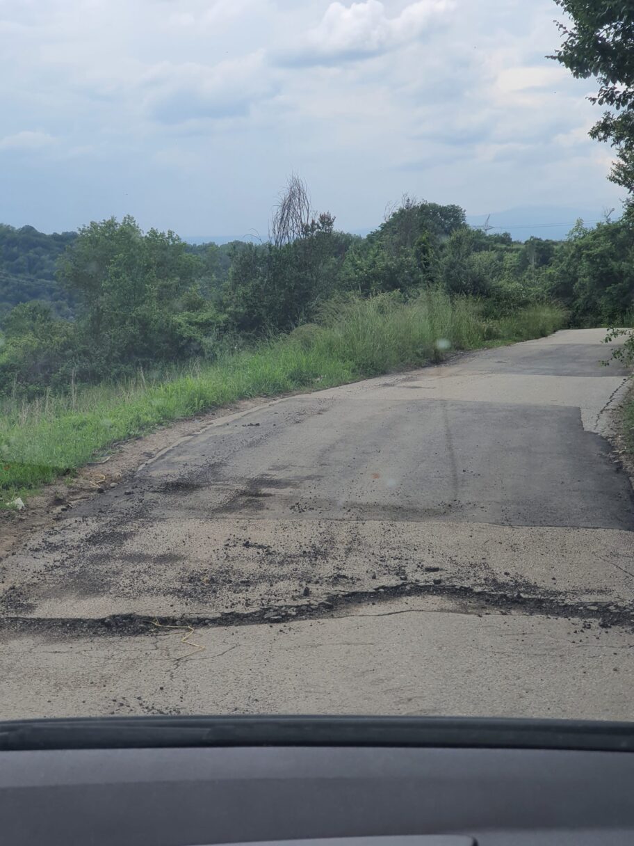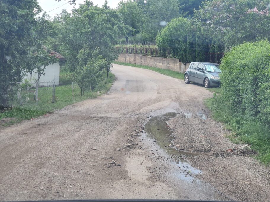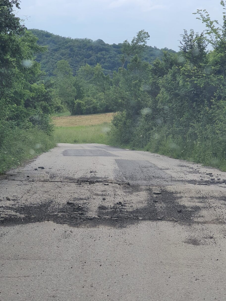 Ovo je stanje puta nakon rekonstrukcije koja je završena pre nešto više od nedelju dana. Jaka kiša koja je bila ovih dana urnisala je asfalt. Problem je što kanal koji je pored puta godinama unazad nije održavan i očišćen i sva voda izlazi na put i rovari asfalt koji je već u katastrofalnom stanju.