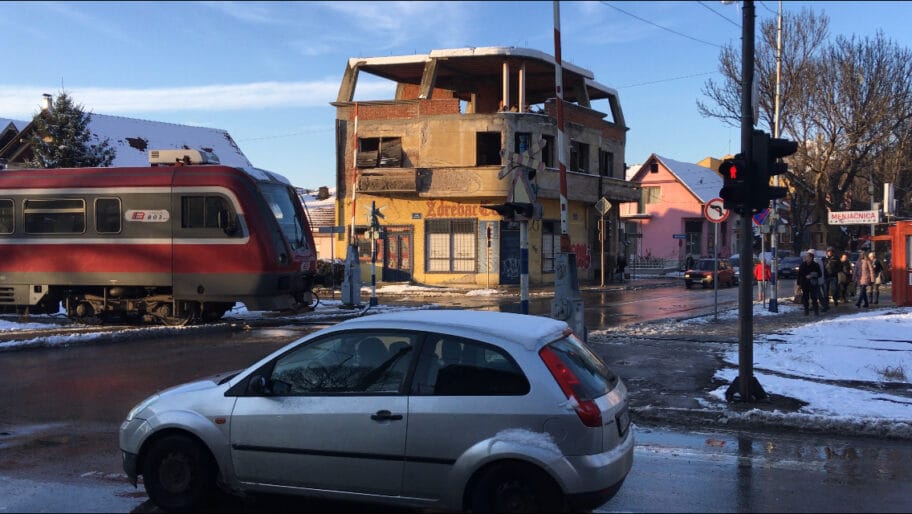 16:00. 6. februar 2020. voz prolazi, a rampa podignuta. Nesreća je izbegnuta samo zato što je dan i dobra vidljivost.