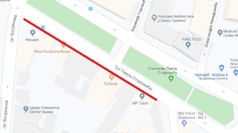 Već više od 6 meseci neasfaltiran je trotoar na Trgu Pavla Stojkovića. Bili su radovi, nasut je samo šljunak, ali je neasfaltiran i nemoguće je normalno se kretati istim. Tačna lokacija: potez od raskrsnice sa Jug Bogdanovom ulicom, pa sve do benzinske pumpe NIS Petrol. Tu se inače parkiraju taksisti i nemoguć je prolazak pešaka, koji moraju da siđu na kolovoz, kako bi prošli. Što je najgore - policija ne reaguje i ne sklanja taksiste sa prostora koji je namenjen pešacima.