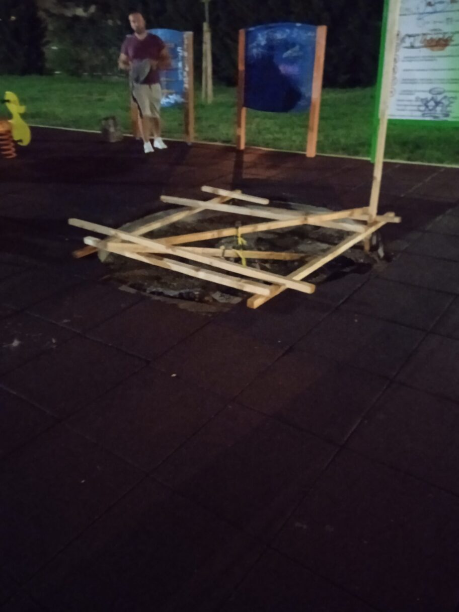 Decijem igralistu za uzrast 2+ godine vec vise od mesec dana ima rupu na mestu neke sprave nedovoljno zasticena I bezbedna. Deluje opasno. Koliko treba vremena da se popravi? Cekamo zimu da bude u funkciji.
