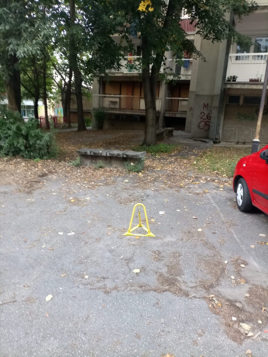 Između zgrada u Vojvode Putnika i Zgrade u Dimitrovgradska19, bahato su postavili,,trouglove" sa katancima i tako bespravno zauzeli parking mesta.
