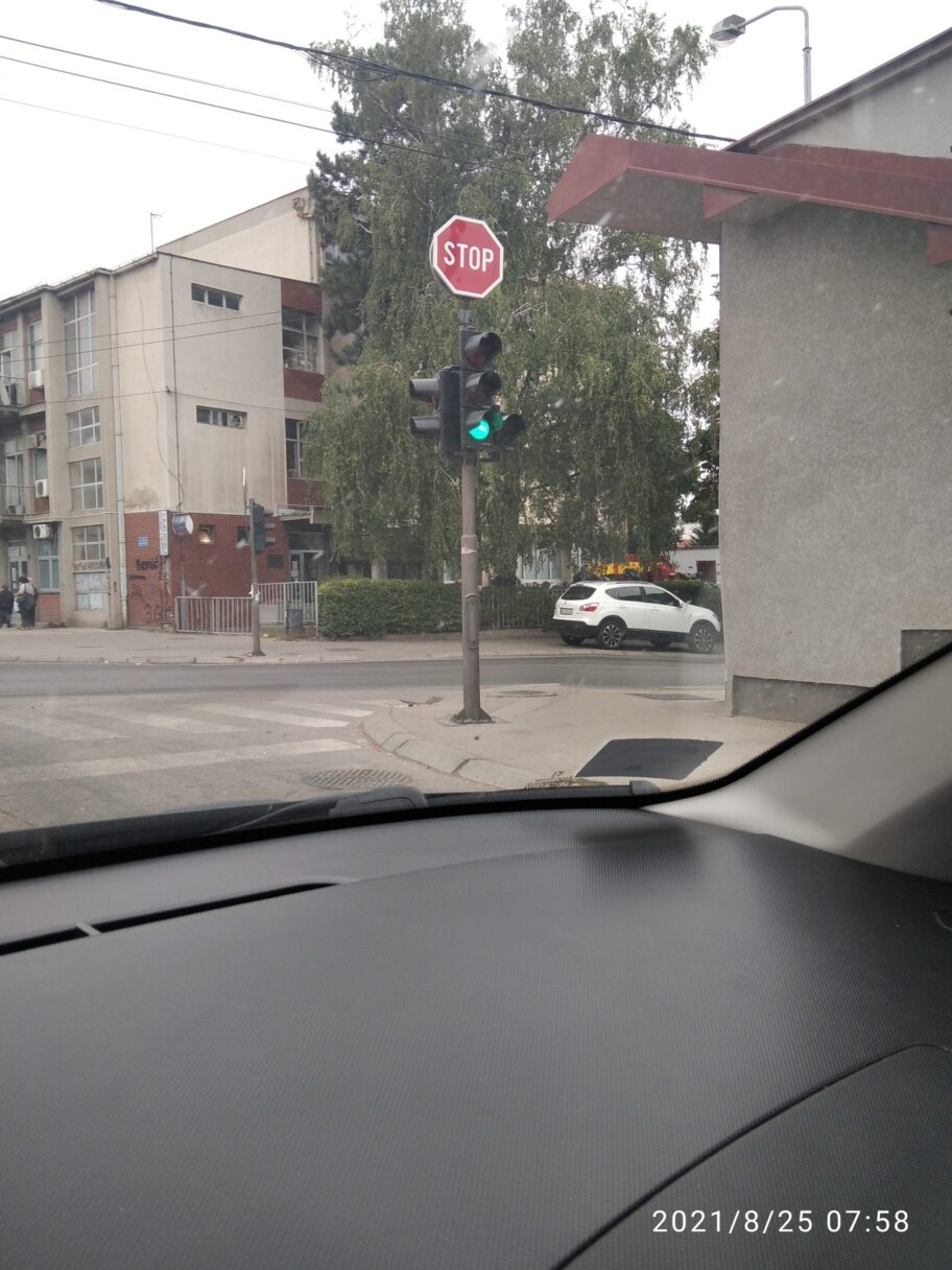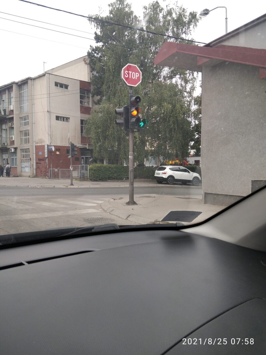 U ulici Takovska ugao sa Njegoševoj na semaforu ne radi sijalica za crveno svetlo.