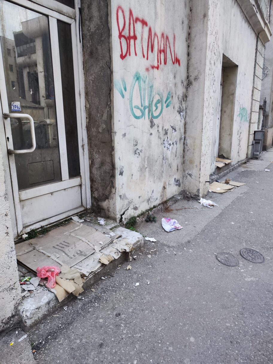 U najužem centru grada danima je razbacano sleće po ulici i trotoaru u ulici Drvarska 4.