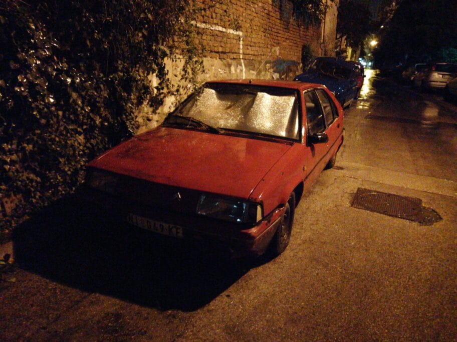 Ulica Kursulina 13 Opština Palilula, "citroen" sa prikačenim tablicama i pored još dva renoa.