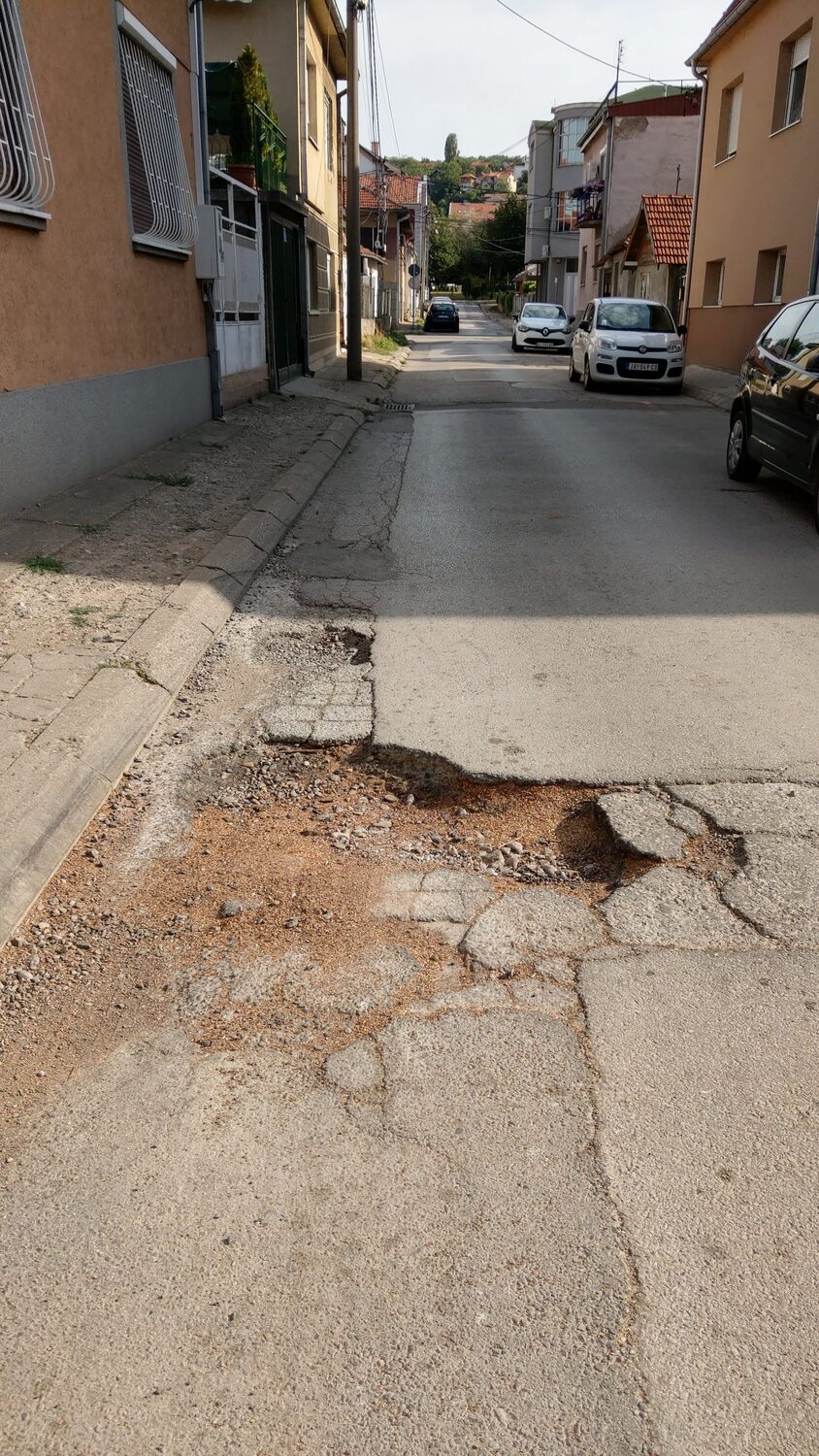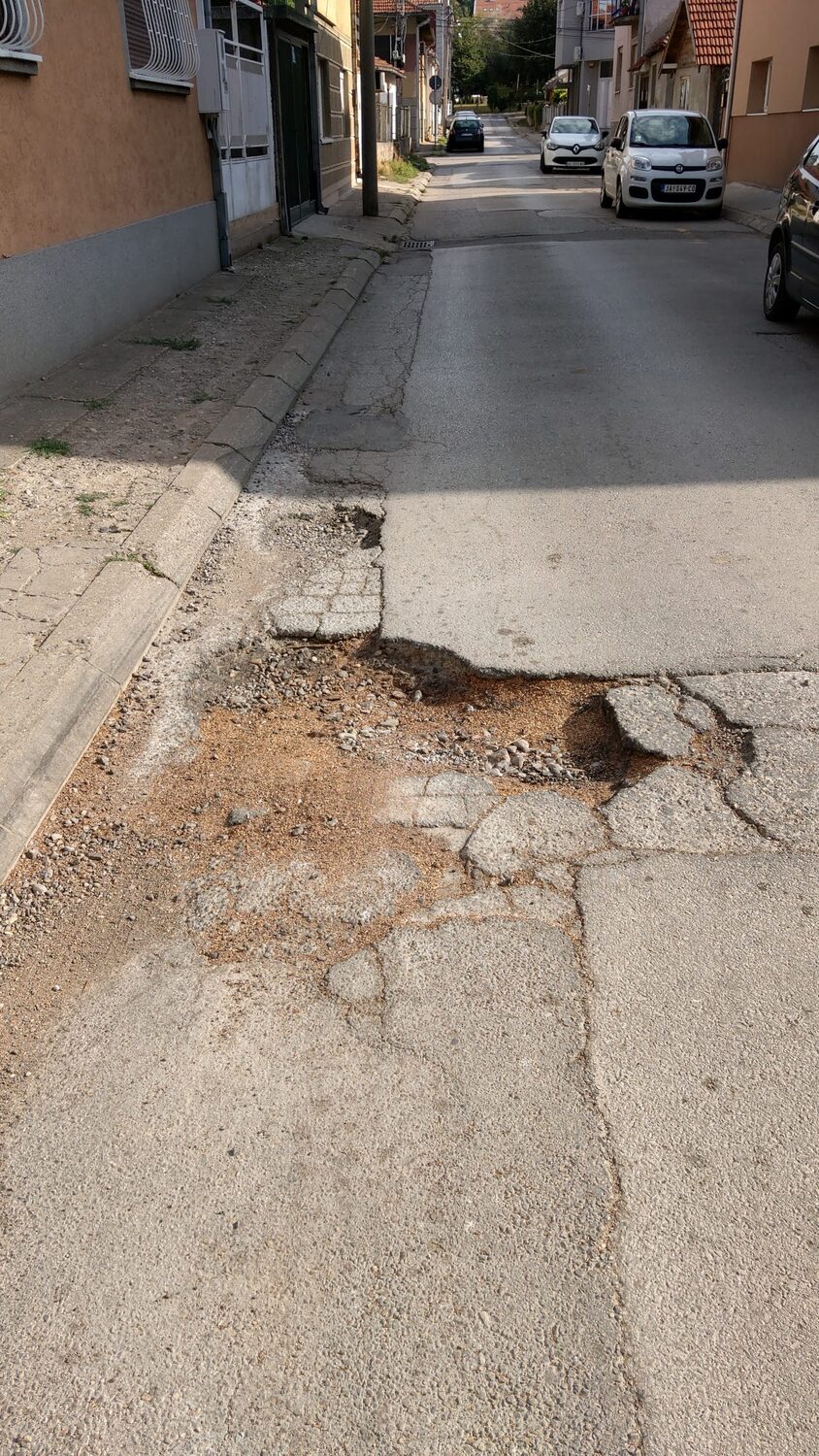 Rupa je sve veca i sve dublja. Dubina varira od 10 cm do 20 cm na nekim mestima. Kada su kola parkirana u ulici (gotovo uvek jesu) jako je tesko zaobici rupu.