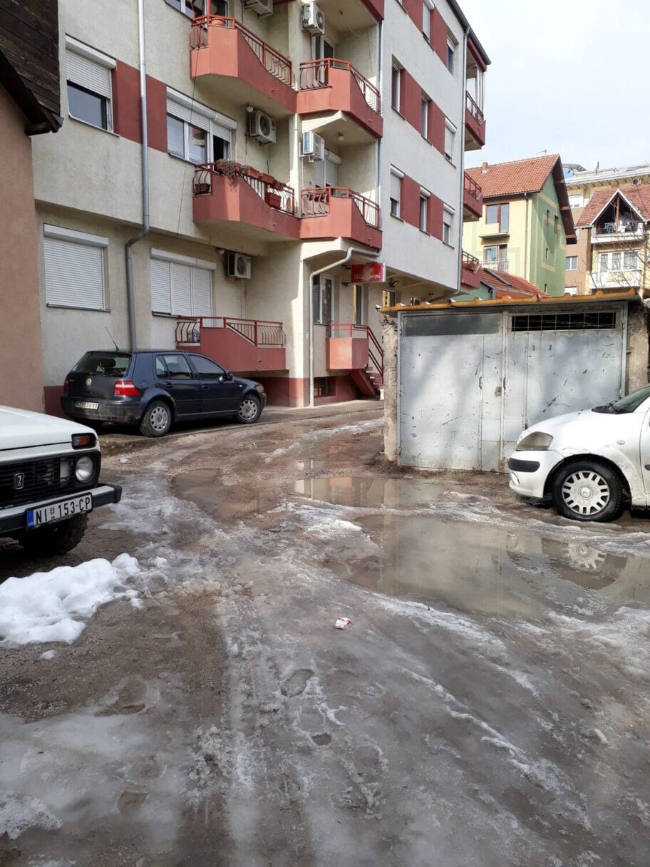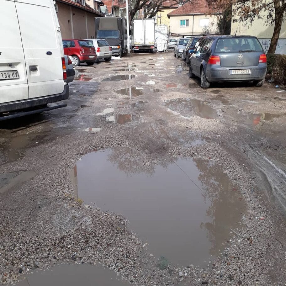 U samom centru grada ulica je neasfaltirana. Leti je užasna prašina a zimi rupe pune vode i blato. Upropašćavaju se automobili, cipele u ek blatnjave, a kada je suvo i dune vetar udisemo užasnu prašknu. Dva puta je nasut grebani asfalt koji se vrlo brzo opet pretvori u rupe. Rešenje je asfaltiranje ulice.