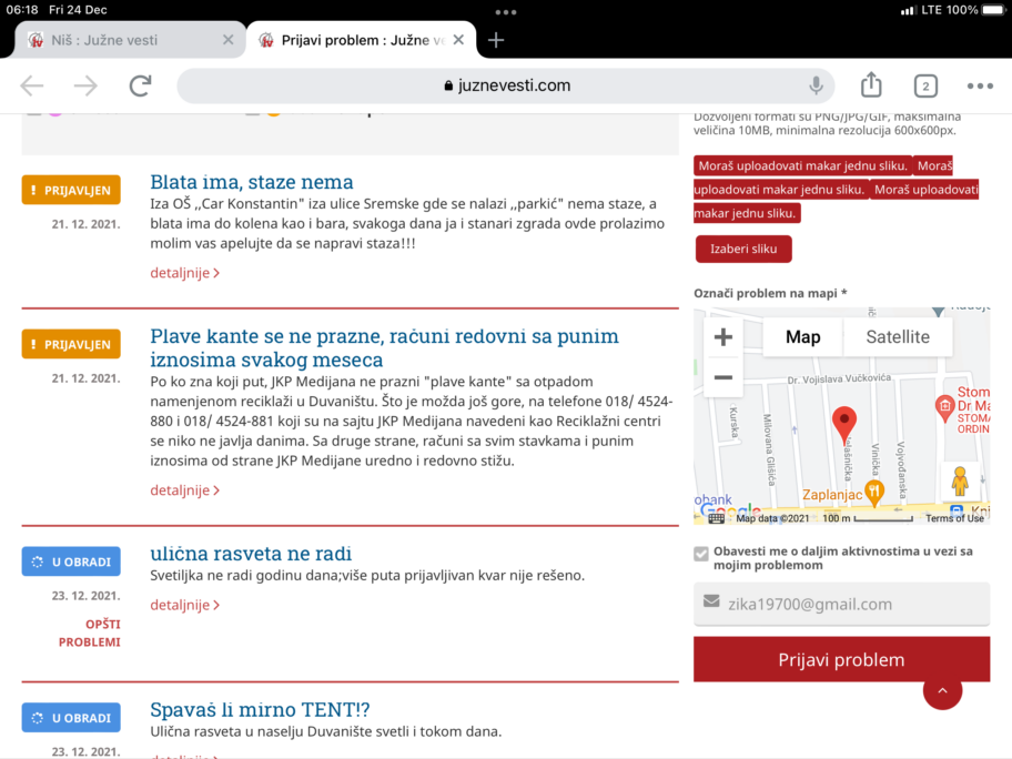 Vec sedam dana neradi u icna rasveta u ulici Jelasnicka Nis-Pantalej