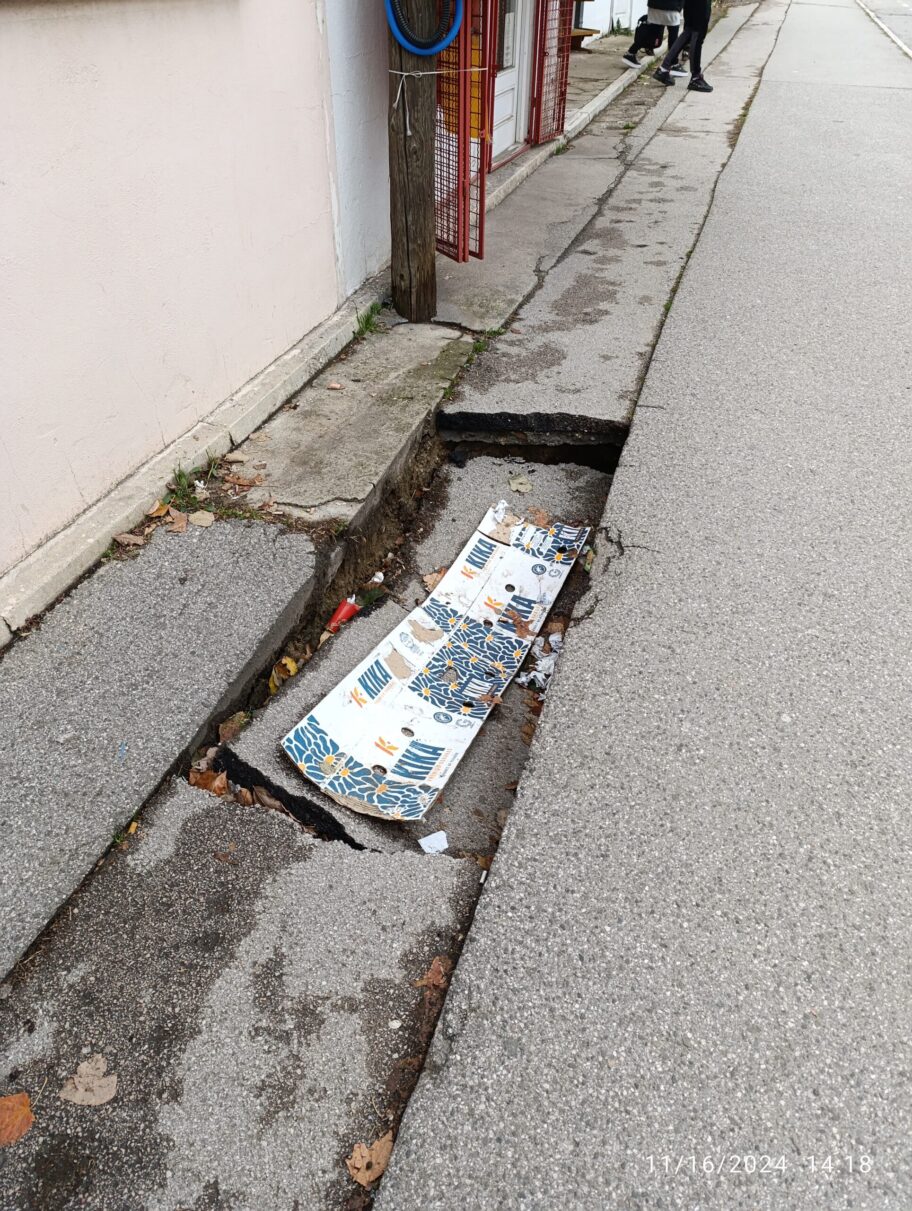 Kod trošarinske pijace na Bulevaru Nemanjića je zakrpa asfalta na trotoaru pala i napravila krater.