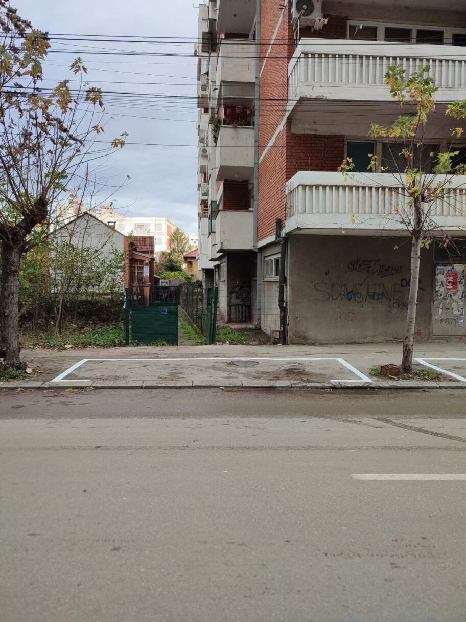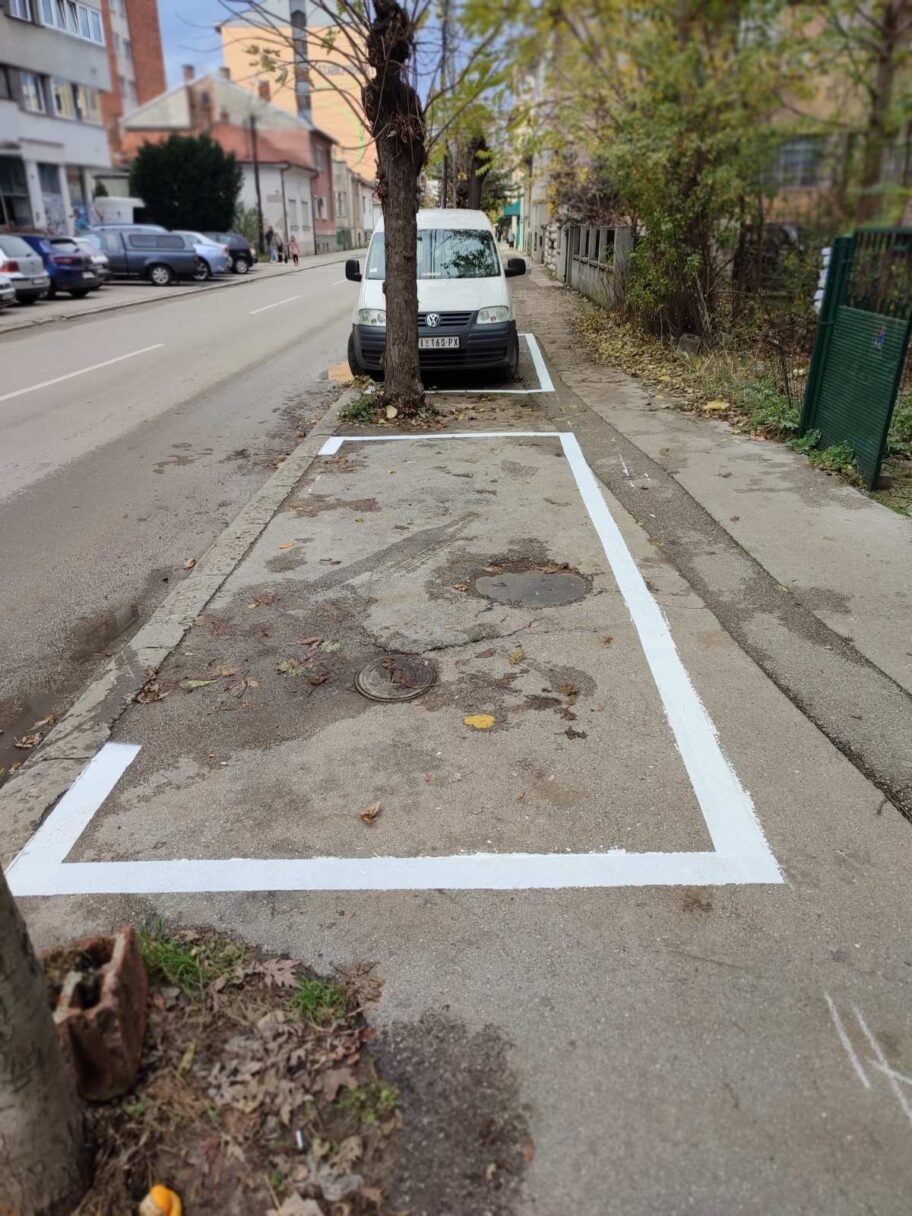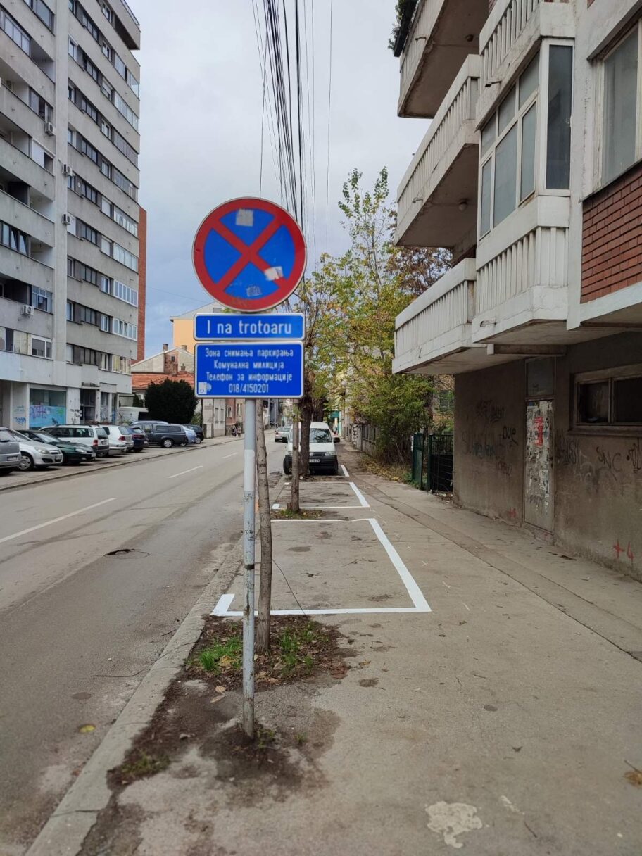 Parking obeležen na šahtama, nakon znaka za zabranjeno parkiranje. Dragiše Cvetkovića, iza Lutkarskog pozorišta