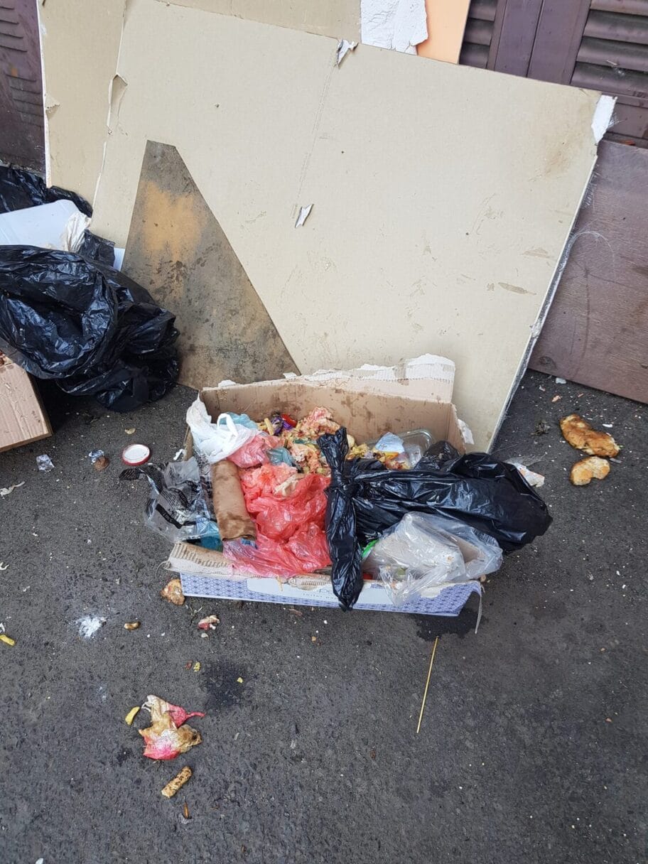 Radnici ugostiteljskih objekata u Ulici Koste Stamenkovića ostatke od hrane umesto da bacaju u svoje kontejnere odlažu pored kontejnera iza Dušanovog bazara. Posle takvo đubre raznose mačke i psi lutalice. Komunalna policija ne izlazi na lice mesta uz obrazloženje da ne mogu da se bave takvim problemima.