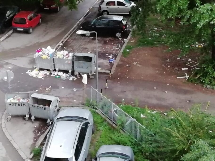Kontejneri izmedju zgrada Branka Krsmanovica 12 i 20 su uvek puni i ptice (koje neke komsije redovno hrane) razvlace đubre tako da je uvek neverovatno mnogo đubreta svuda okolo. Danas je i smrdelo opasno. Plašim se da ne izbije neka zaraza.