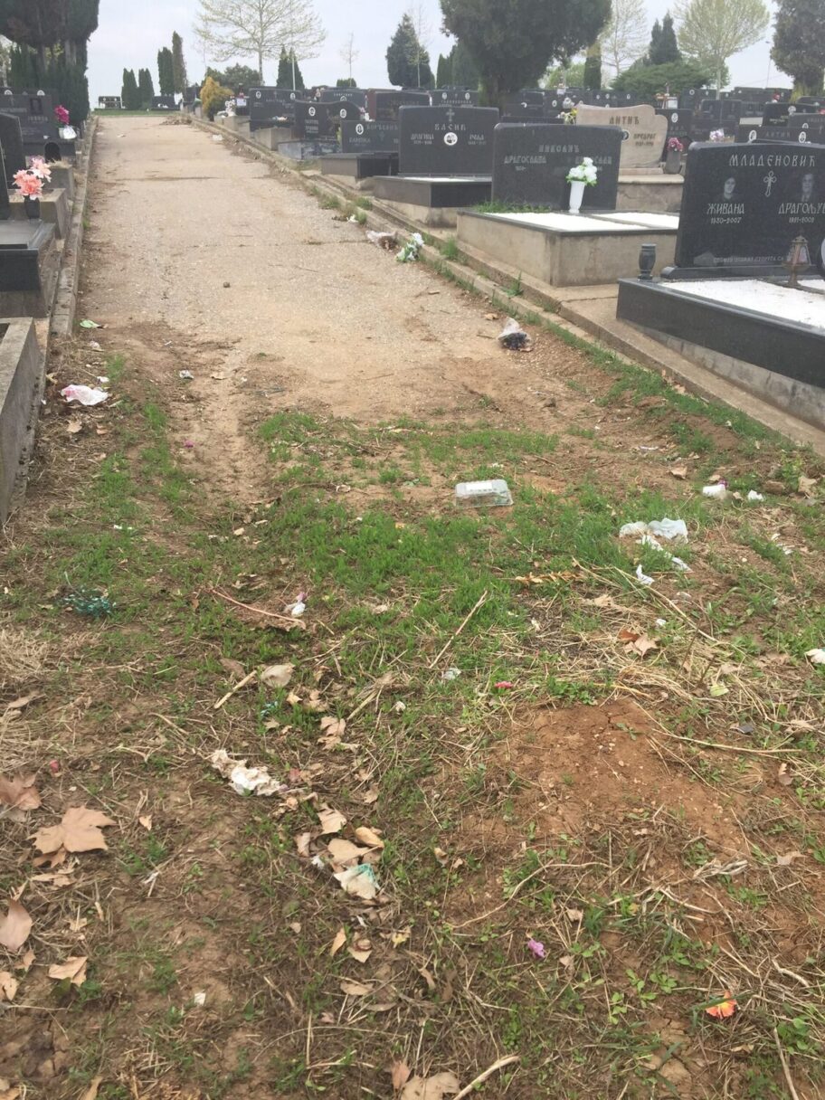 Na lokaciji F3 uz samu ogradu na Novom groblju nalazi se veliko đubriste koje niko godinama ne čisti. Kiša je takođe nanela pesak i zemlju na dno staze. Iako vlasnici parcela redovno plaćaju održavanje, ovaj deo Novog groblja više liči na smetlište.