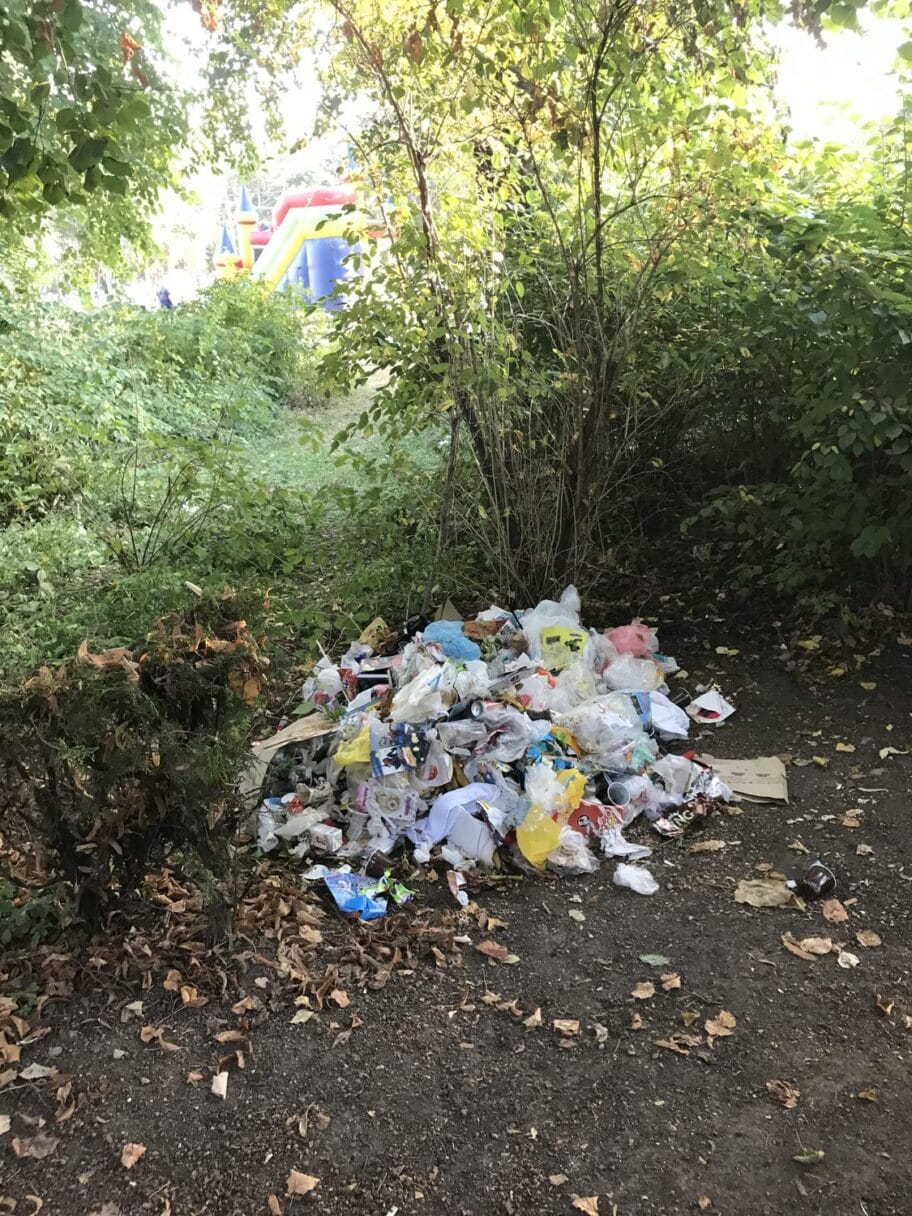 Izbačeno đubre na zelenu površinu parka Čair