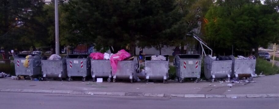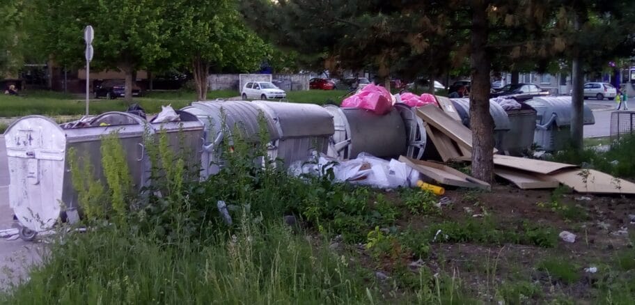 Kontejneri i stalno prisutno đubre oko njih. Isti pripadaju zgradi Majakovskog 34. Napomenuo bih da JKP Mediana prazni i čisti, ali je nenormalan tempo donošenja otpada sa svih strana. Posao za komunalnu policiju. U blizini crkve, Dis-a, Stop shop-a, a nikome ništa ne smeta što se gazi preko đubreta. Niko nema obzira prema ljudima koji tu žive pa napune kola i prikolice doteraju ko zna odakle i bace. O privatnim firmama da ne pričam, parkiraju kombi pored i direktno iz njih bacaju. Kontejneri se prazne tri puta nedeljno, a potrebno je najmanje svaki drugi dan, ako ne i jednom dnevno.