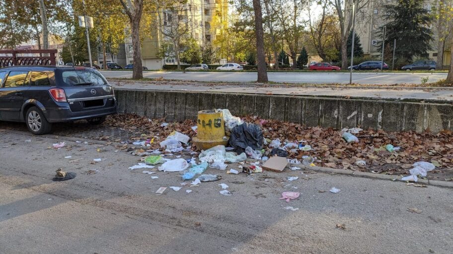 Od kako su uklonjeni kontejneri ispred Zone 2 na Bulevaru Nemanjića (a inače su postavljeni podzemni nekih 20ak metara naniže), smeće se baca u ove male kante i raznosi po ulici. Bilo je i sanitarnog otpada iz stomatoloških ordinacija u Zoni. Sve se to dešava na 10 metara od sedišta komunalne policije u zgradi Lepa Brena.