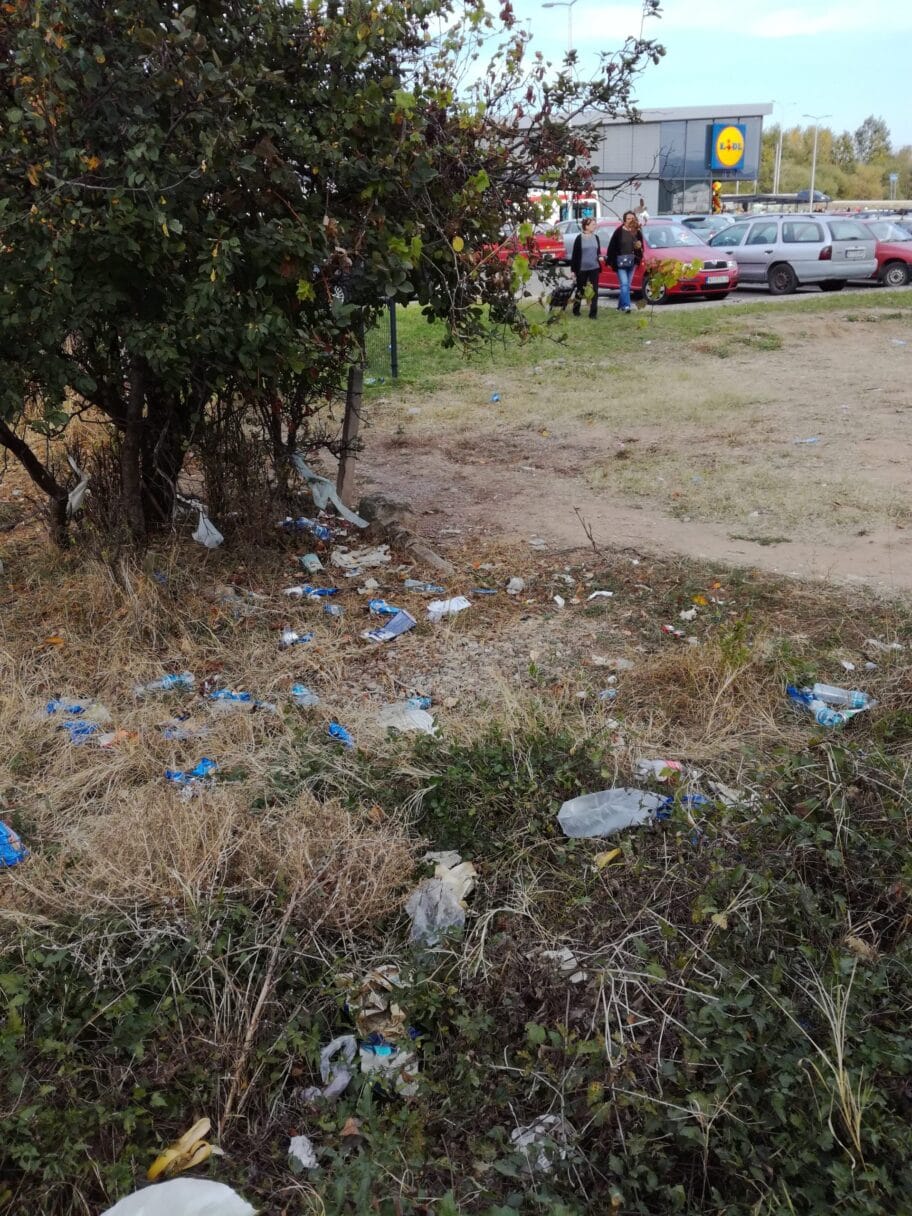 U krugu od oko 500 metara sve se plavi od omota od kroasana i flašica vode koje se besplatno dele ispred Lidla.
