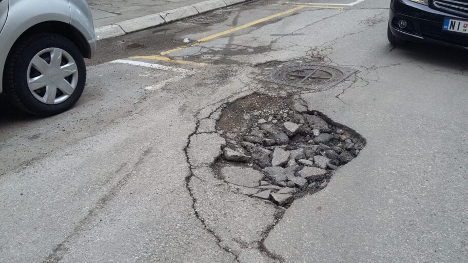 Rupa prečnika 1m i dubine 30-40cm u Učitelj Tasinoj ulici.