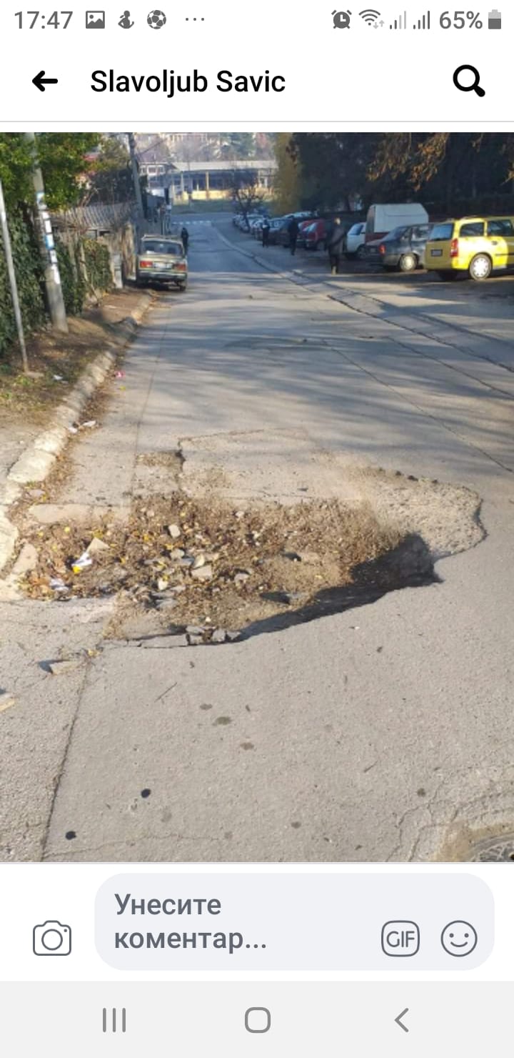 U MK "CRVENA ZVEZDA" u Ulici Triglavska, ispred broja 10 već duže vreme se nalazi rupa, a posle intervencije JKP "Nassus". Pozivamo nadležne da ovaj problem, koji predstavlja opasnost i za pešake i vozače što pre reši ili ćemo mi, meštani, da se organizujemo i napravimo bašticu sa cvećem.