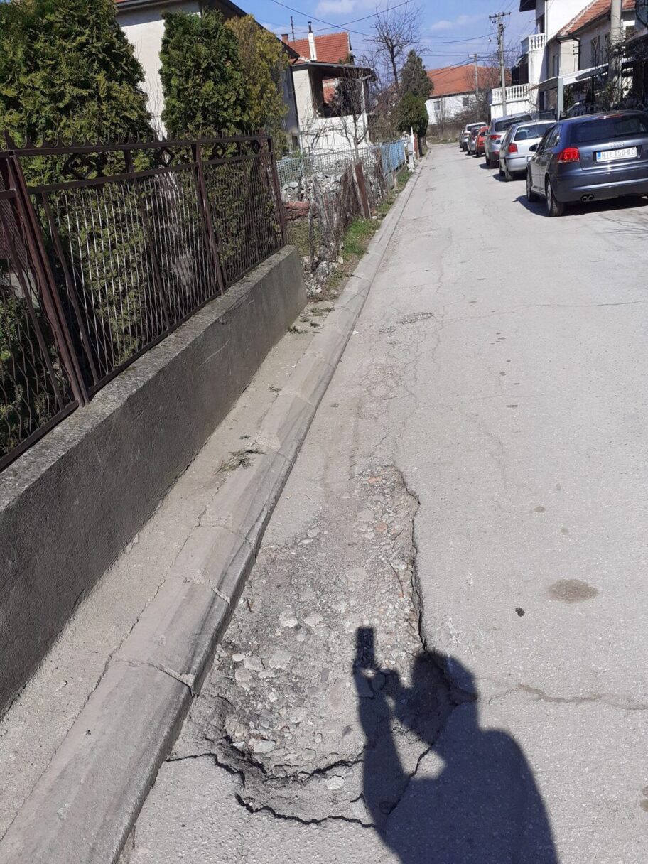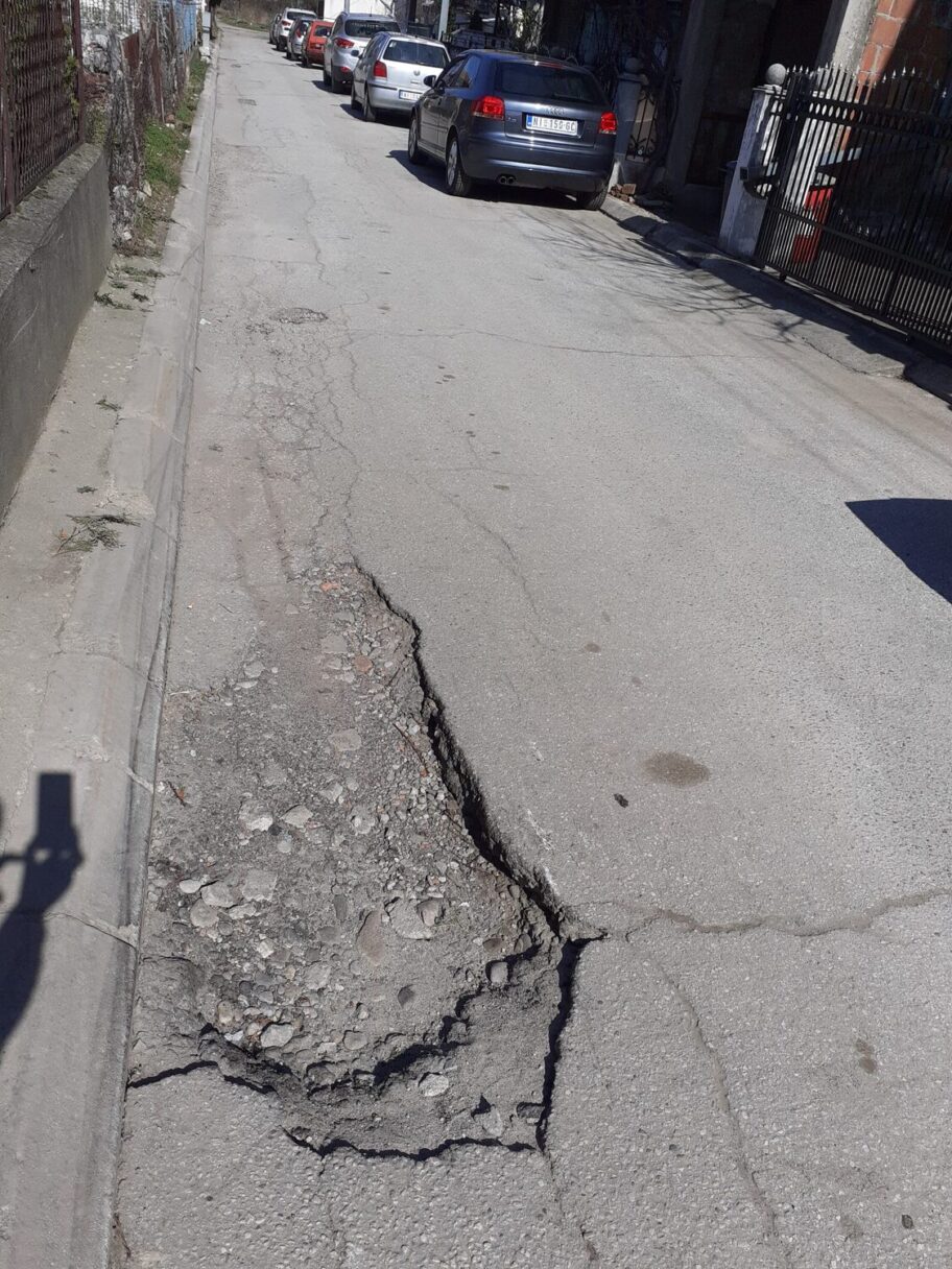 U ulici Vukmanovska, opština Palilula, pored kuće broj 10 napravila se ogromna rupa koja stvara problem kako vozilima tako i pešacima. Auto nikako ne može da zaobiđe rupu a da ceo točak ne upadne u rupu. Problem je još veći kad padne kiša i ne vidi se kolika je dubina rupe.Takođe dubina rupe a i širina predstavlja veliki problem i kamionima koji odvoze đubre.