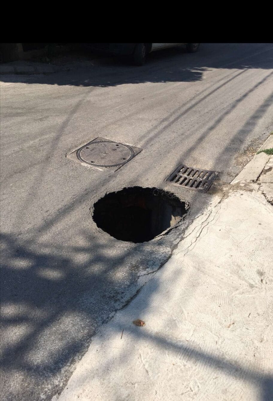 Nov asfalt je postavljen pre 5 meseci, da li je moguće da ga nosi svaka kiša koja padne a sada je počeo i sam od sebe da propada. Rupa je toliko duboka da može neko da pogine.