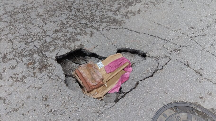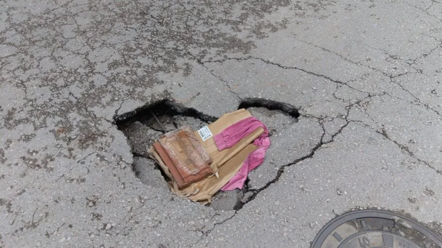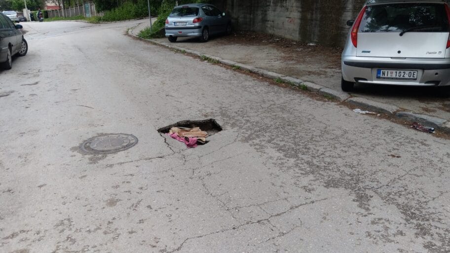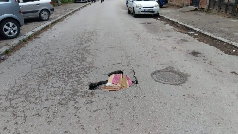 U ulici Starca Vujadina svakim danom sve veća rupa. Asfalt se urušava nasred ulice.