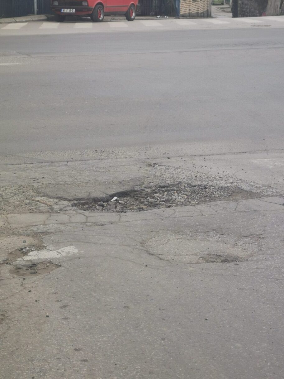 Velika udarna rupa na ulazu u deo Vinaverove ulice koja nastavlja ka Beogradskoj. Praktično nije moguže izbeći je, stoji minimum godinu dana.