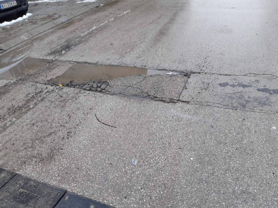 Udarna rupa u ulici Radomira Antića u Donjoj Vrezini, širine oko 1 m, prosto ne može da se zaobiđe.