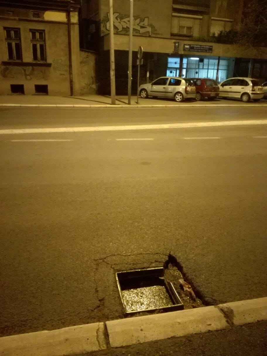 Krateri na putu u Ulici kralja Stefana Prvovenčanog broj 32. Mnoga vozila ostaju bez ratkapni, guma i sl.