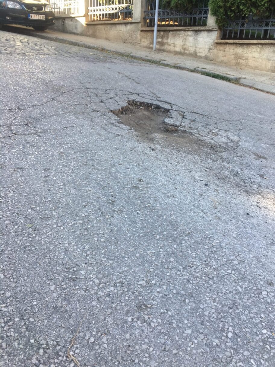 Otvara se udarna rupa u Ulici Vase Čarapića u neposrenoj blizini Osnovne škole "Kole Rašić", otpadaju komadi asfalta u ulici pod nagibom. Inače, to parče ulice se ponaša kao malo klizište, te problem može da bude još veći.