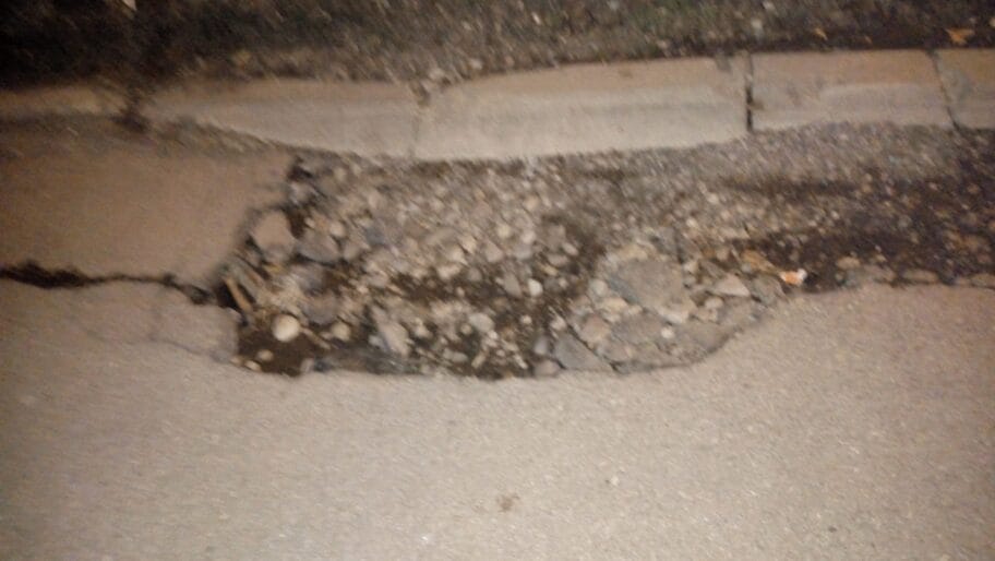Ulica Vinkovačka ispred broja 8. Komšije pune peskom, ali je sve veća i veća.