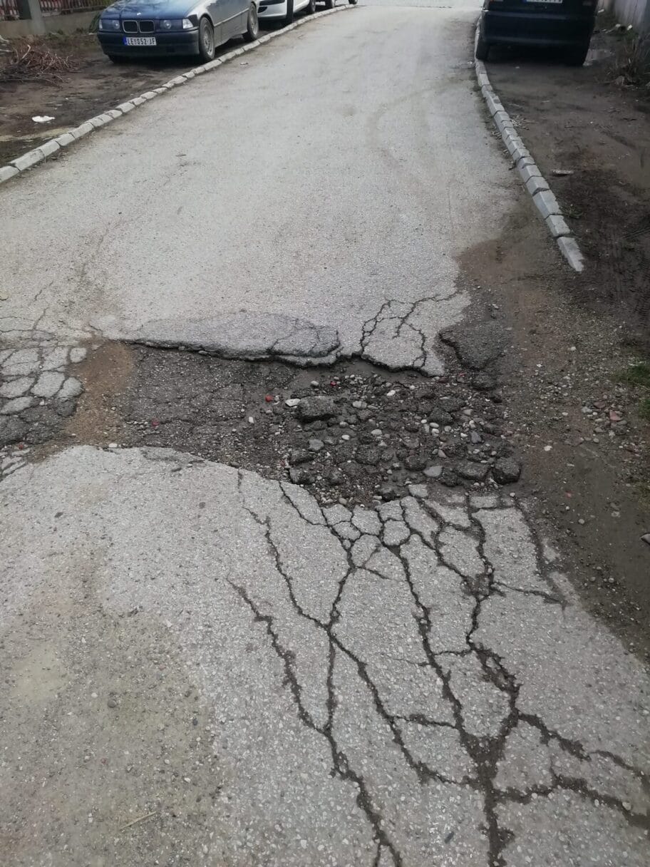 U ulici Milojevoj, opština Pantelej, koja izlazi na Pantelejsku, ima nekoliko udarnih rupa koje se ne popunjavaju već desetak godina. Rupe su ogromne, prečnika i po 2 metra, a ulica je cela široka oko 3 metra. Molim nadležne da reše ovaj problem jer i mi koji živimo u ovoj ulici uredno plaćamo registraciju vozila kao i ostale komunalne dažbine.
