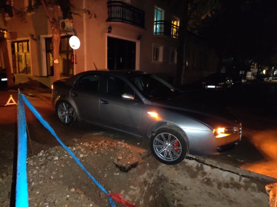 Neobeležena iskopana rupa kod hotela Niški cvet. U potpunom mraku, ulična rasveta na banderi ne radi.