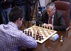 NIŠ – U revijalnom meču u holu Gradske kuće bivši svetski prvak Anatolij Karpov pobedio niškog šahistu Miroslava Miljkovića ukupnim rezultatom 5-1.