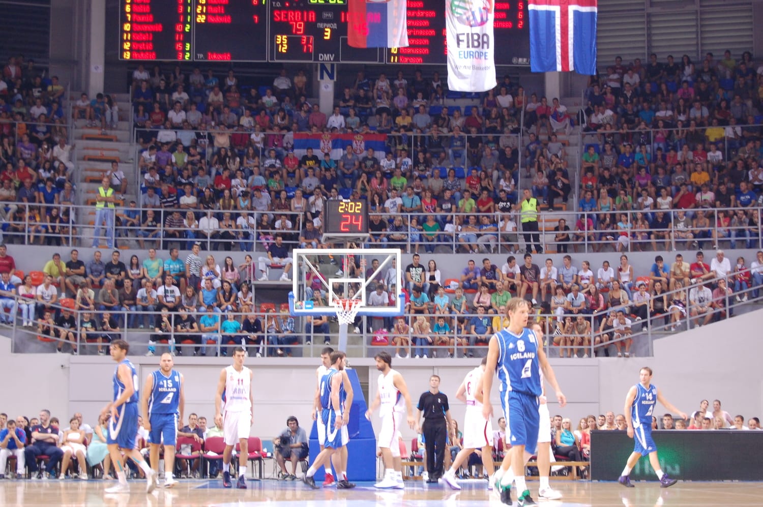 Naši košarkaši su počeli ubedljivo i prvu četvrtinu dobili sa 31:12. Nastavili su u istom tempu i u drugoj četvrtini 31:17 (ukupno 66:2). U trećoj je došlo do opuštanja naših igrača, što su iskoristili košarkaši Islanda. U četvrtoj su, uz pomoć podrške sa trbina, naši košarkaši opet zaigrali organizovanije i bili ubedljivi sa 30:9.