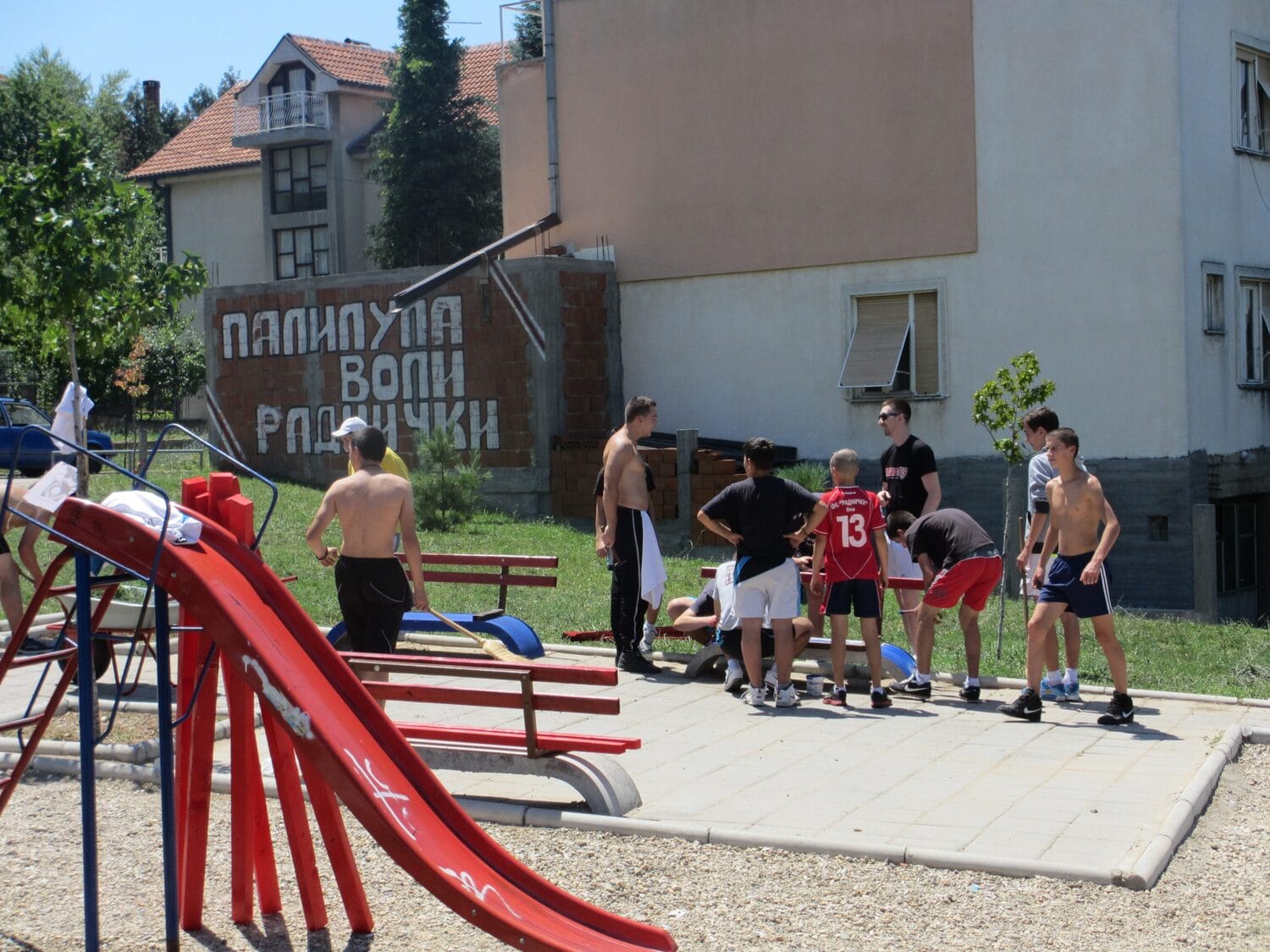 Navijači Radničkog sa Palilule sami su se organizovali i počeli da uređuju park preko puta hotela „Aleksandar“.
