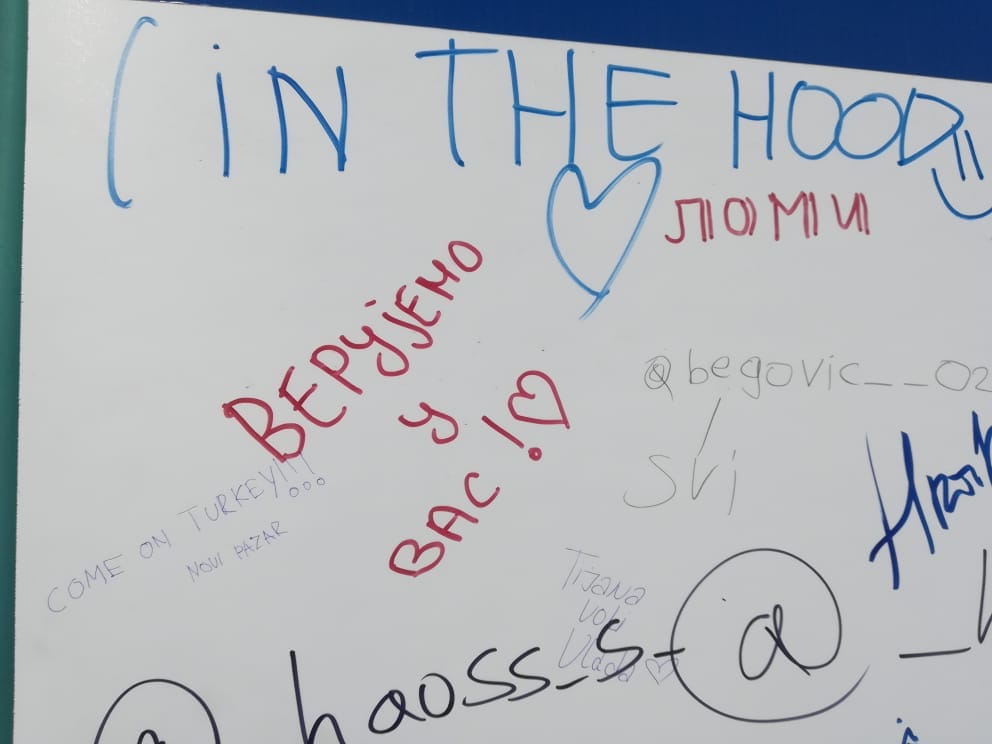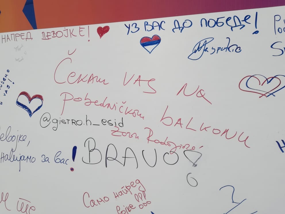 Pored terena je izložen i pehar koji će podići kapiten najbolje evropske selekcije na šampionatu, a iza pehara je tabla gde građani mogu poslati poruku omiljenom timu.