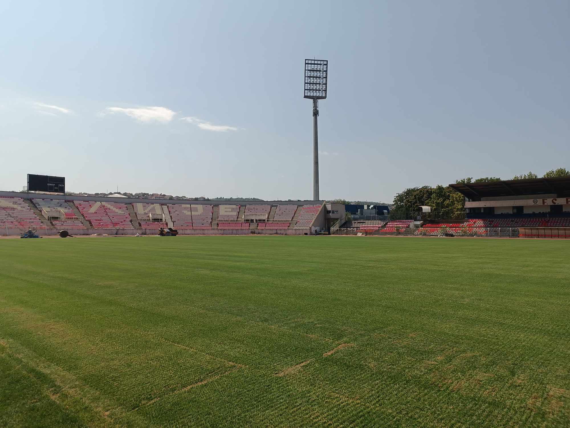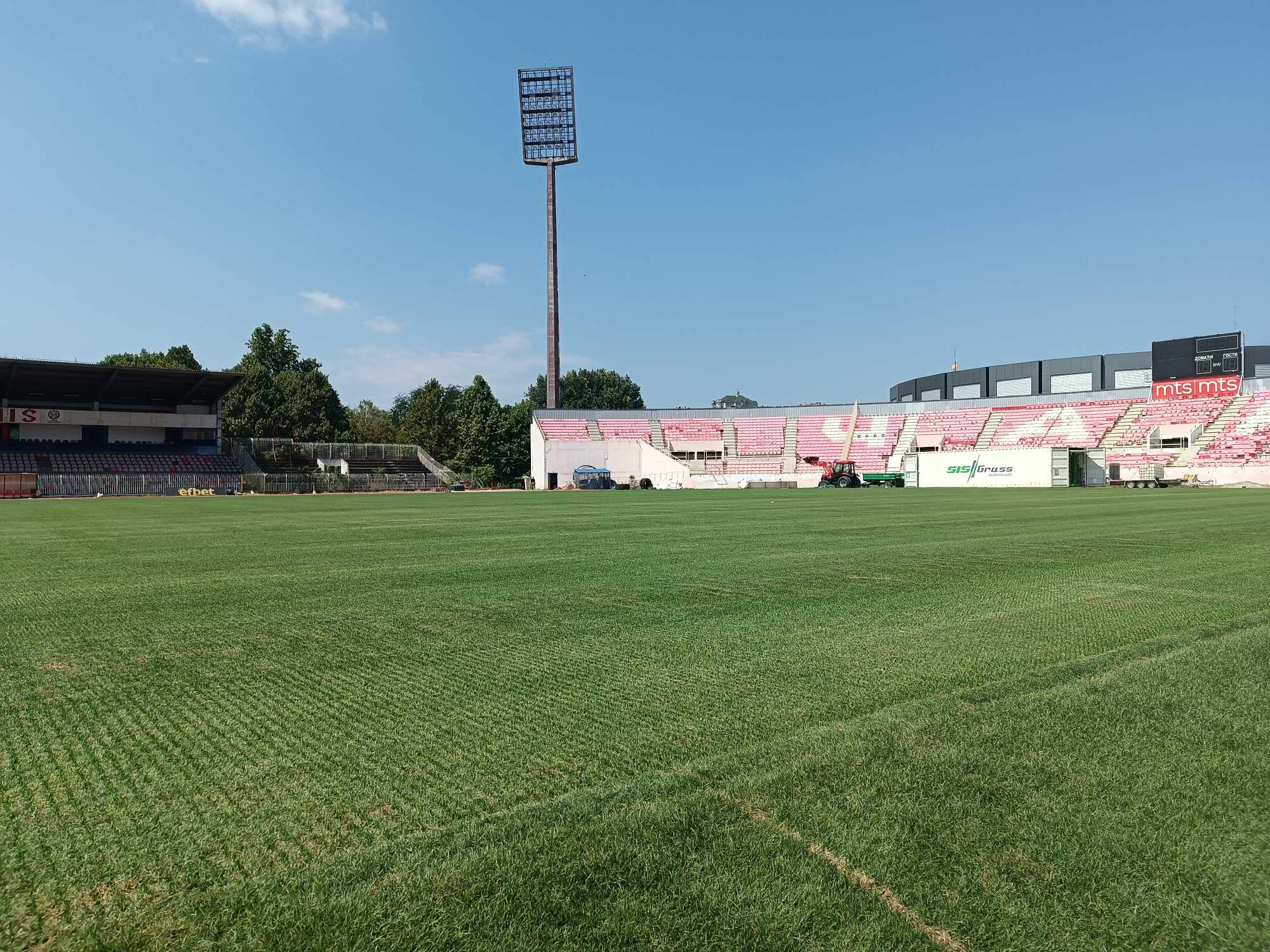 Radovi na promeni terena trajali su skoro dva meseca., a teren je hibridni što je kombinacija prirodne i veštačke trave.
