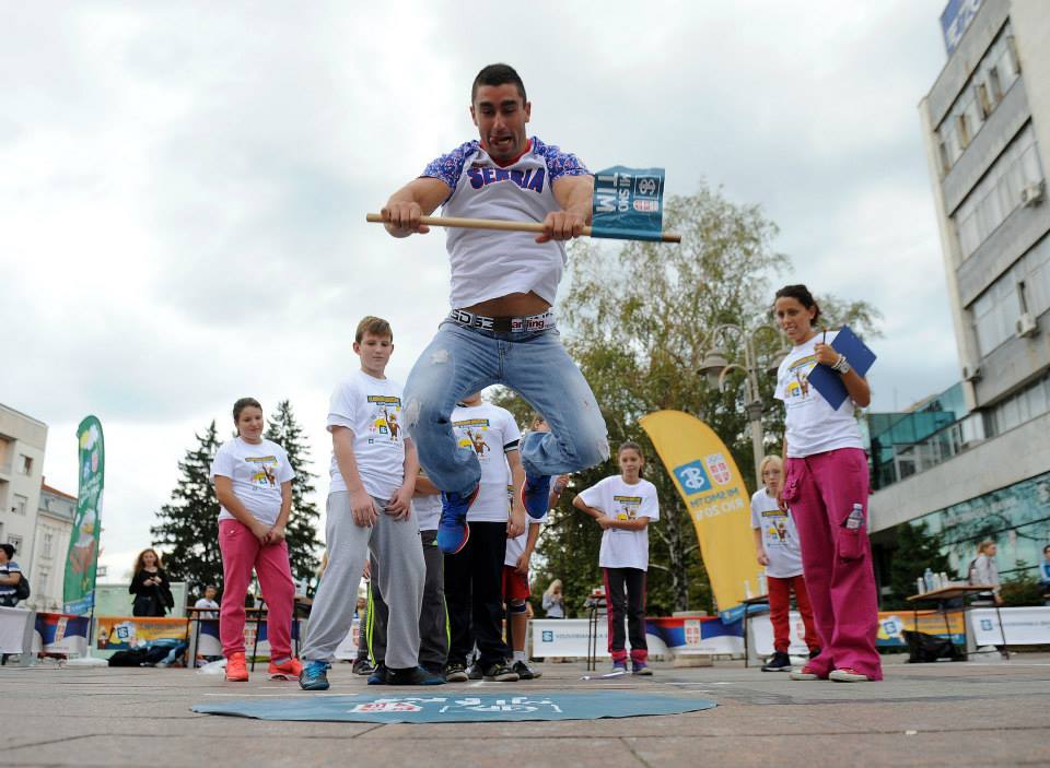 Na Trgu kralja Milana učenici od četvrtog do šestog razreda iz više niških osnovnih škola imali su priliku da se takmiče u tradicionalnim sportskim igrama, a podršku im je pružio aktuelni svetski prvak u kajaku Marko Novaković.