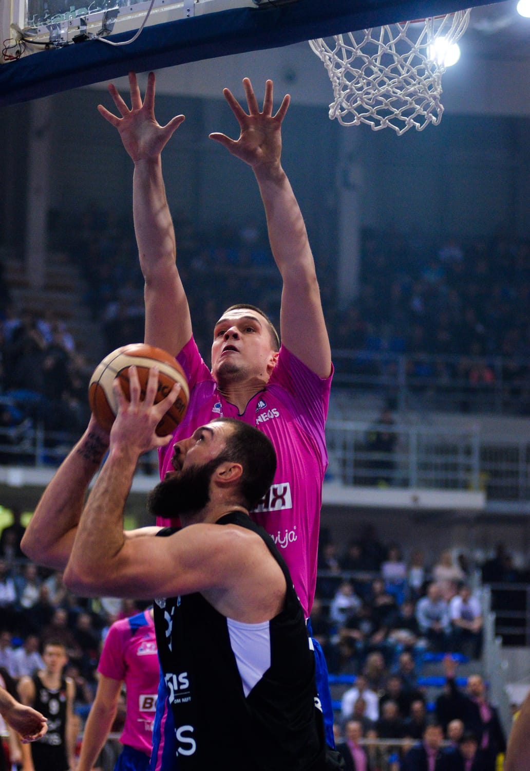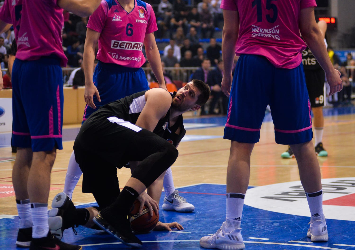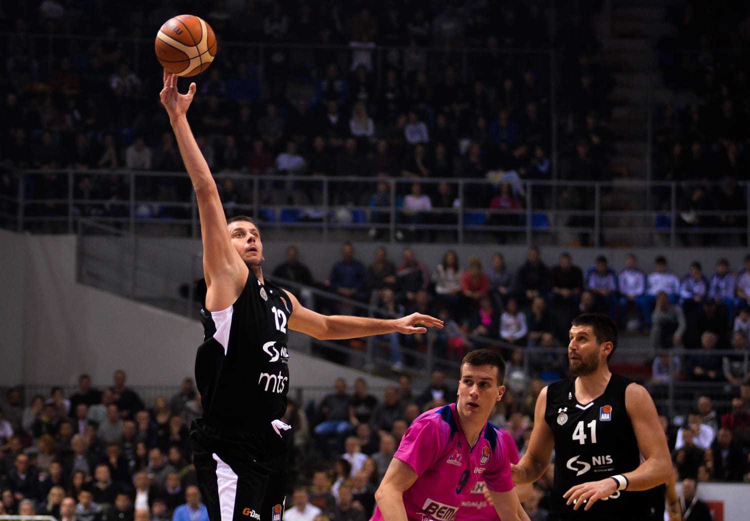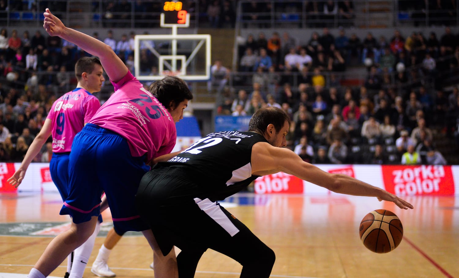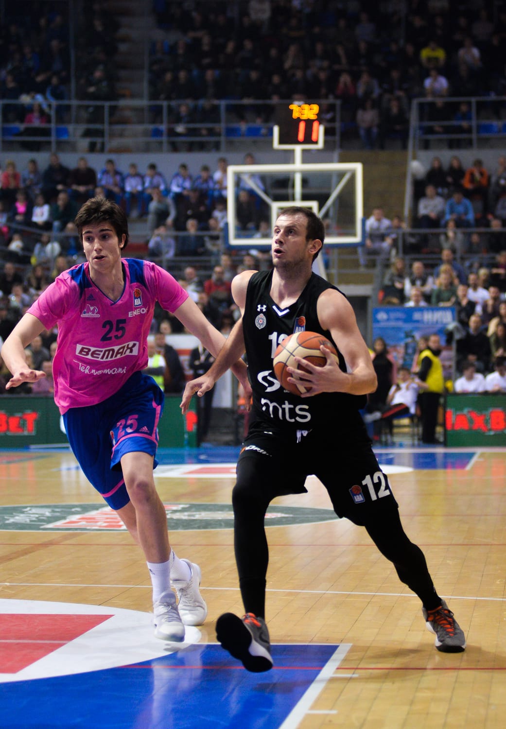 Uglavnom su tokom prvog poluvremena momci u roze-plavim dresovima jurili rezultat. Često su sustizali rivale, ali Partizan je uvek pronalazio načine da „pobegne“, a sredinom deonice, sa dva koša Vanje Marinkovića, i „odlepili“ su se na +7. Vratio je to Ognjen Jaramaz, ali nije sledeći nalet crno-belih, kada su dostigli i prvu dvocifrenu prednost.