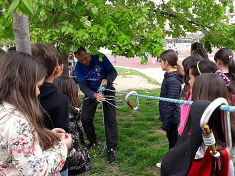 Učenici su pažljivo slušali, a kasnije imali dosta pitanja o ovoj, njima veoma interesantnoj temi. Na drugom času Slaviša Ivanović je u školskom dvorištu pokazao budućim planinarima osnovnu planinarsku opremu: šator, dereze, kacigu, karabinjere, uže – kaže Petrović Radovanović.