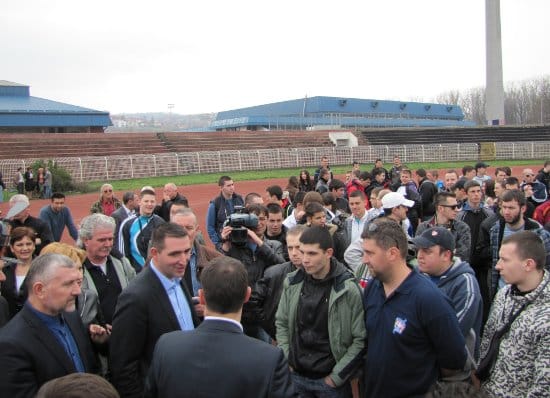 Pa ovde se skupio ceo DS,dobro ne bas ceo onaj “gradonacelnikov“,pa je cak i Dulic dosao,verovatno da pomogne u predstojecim izborima koji ih ocekuju u partiji.Nazalost,ne treba u svoje svrhe da koriste stadion,i njegovu izgradnju da bi se okupili.A nama ostaje samo da se molimo da ne zaduze i nasu decu za jos koji bespotrebni milion.