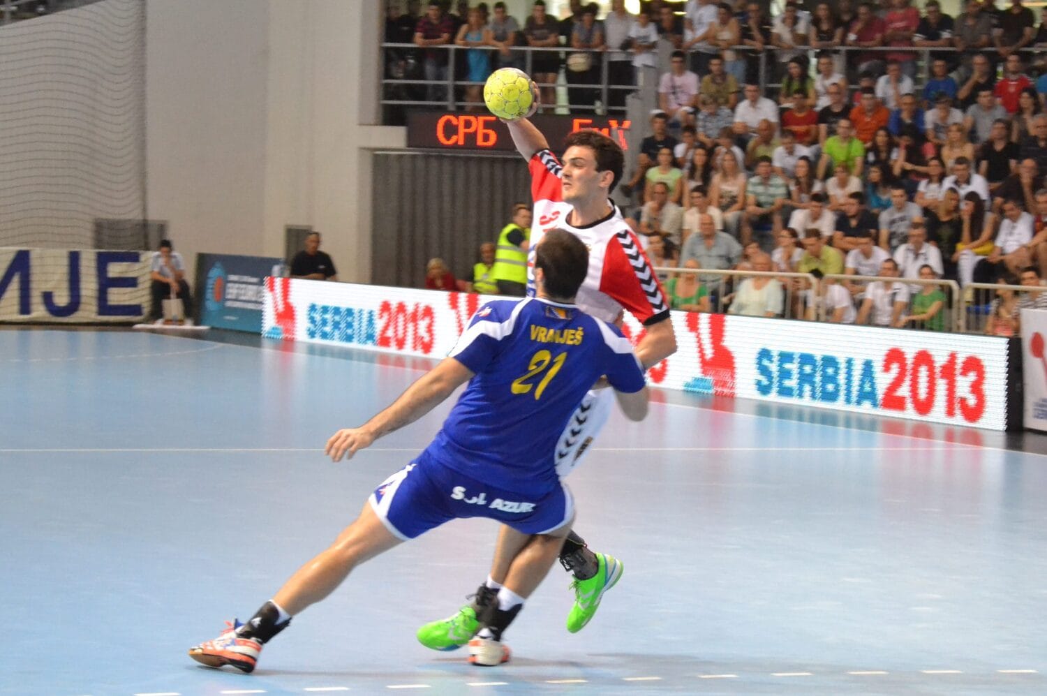 Do kraja prvog poluvremena Srbija nije uspevala osetnije da se „odlepi“. U drugom delu igre bila je potpuno drugačija slika. U 38. minutu bilo je 17:16, pa su domaći nošeni podrškom sa tribina napravili seriju od 7:1 i tada je bilo jasno da će Srbija proslaviti prvo mesto u grupi sa najboljim navijačima.