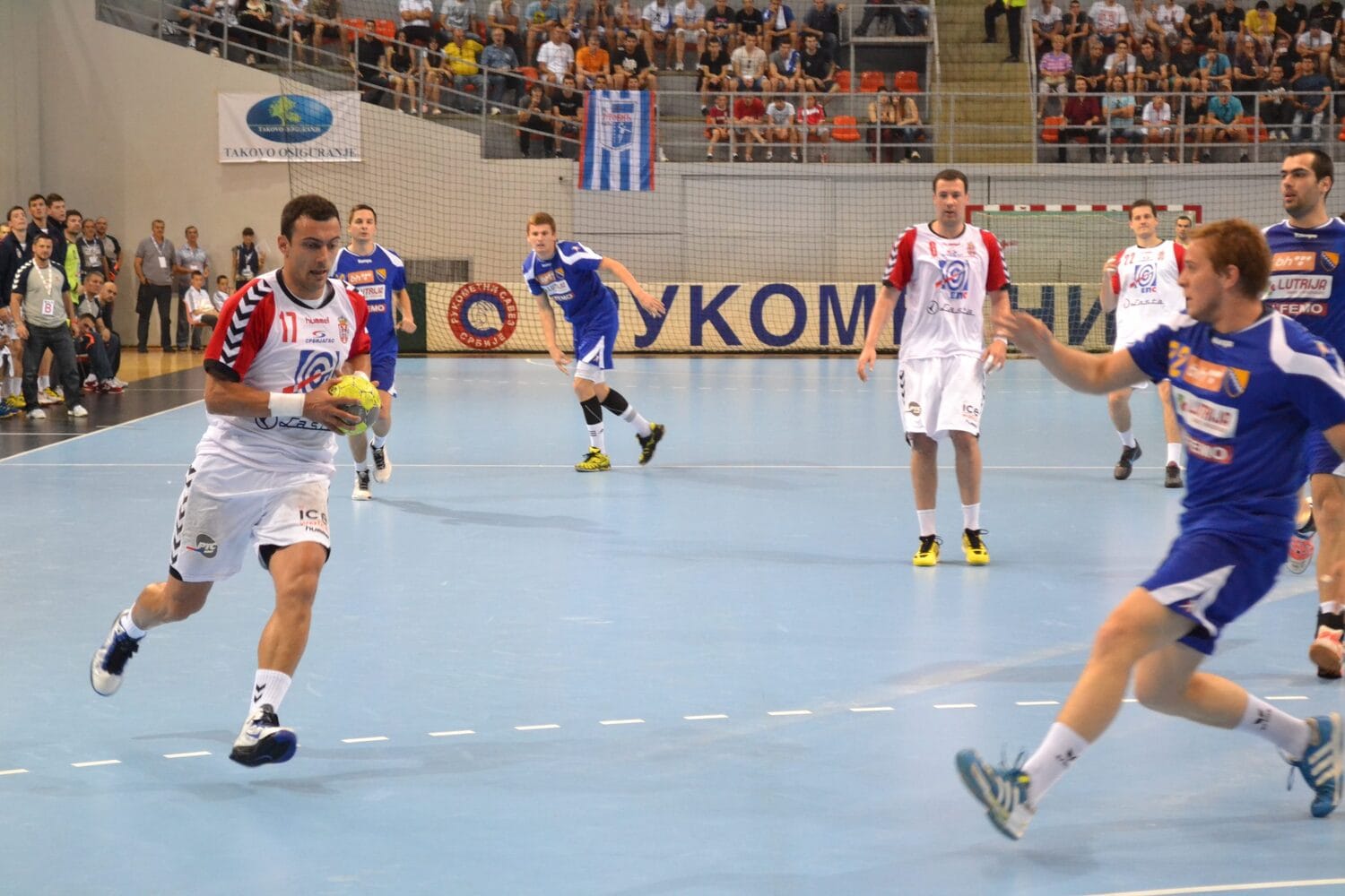 Srbija je povela golom Filipa Marjanovića u prvom minutu, usledio je gol gostiju, ali Srbija je već u 3. minutu vodila sa 3:1. Do 11. minuta Srbija je imala prednost, ali je Bosna i Hercegovina izjednačila na 6:6 i čak povela sa 7:6. Vodili su gosti i 8:7, ali je usledila serija naših igrača od 4:0.