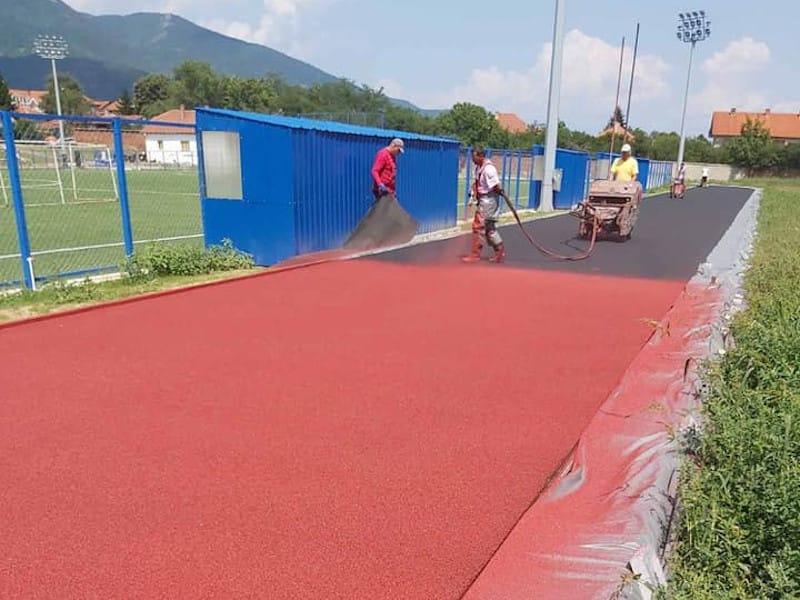 U međuvremenu su u sklopu uređenja staze površine 2.100 metara kvadratnih, sa 4 trake, završeni svi zemljani i betonski radovi, a početkom meseca se krenulo sa finalnim radovima, pa je tada najpre postavljena crna gumirana podloga, nakon čega su stekli uslovi da se uradi i završni sloj.