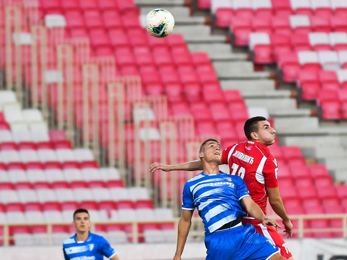 Veliku šansu, samo minut nakon ulaska u igru Dušan Stojiljković imao je veliku šansu, ali je pogodio prečku u 80. minutu.