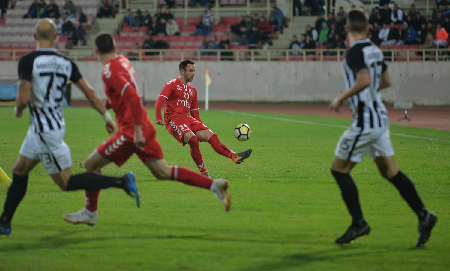 Bilo je dosta polu-prilika na derbiju kola Superlige, ali vrlo malo konkretnih, sve do 35. minuta. Saša Stojanović prošao je po desnoj strani i centrirao, a Nermin Haskić glavom poslao loptu iza Stojkovićevih leđa.